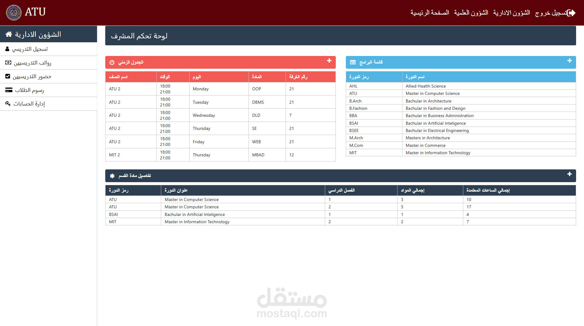 إدارة المواد الدراسية والجداول: إنشاء مقررات وتوزيعها على المدرسين والطلاب