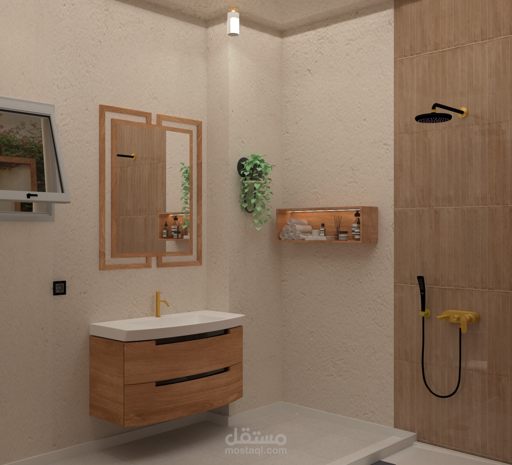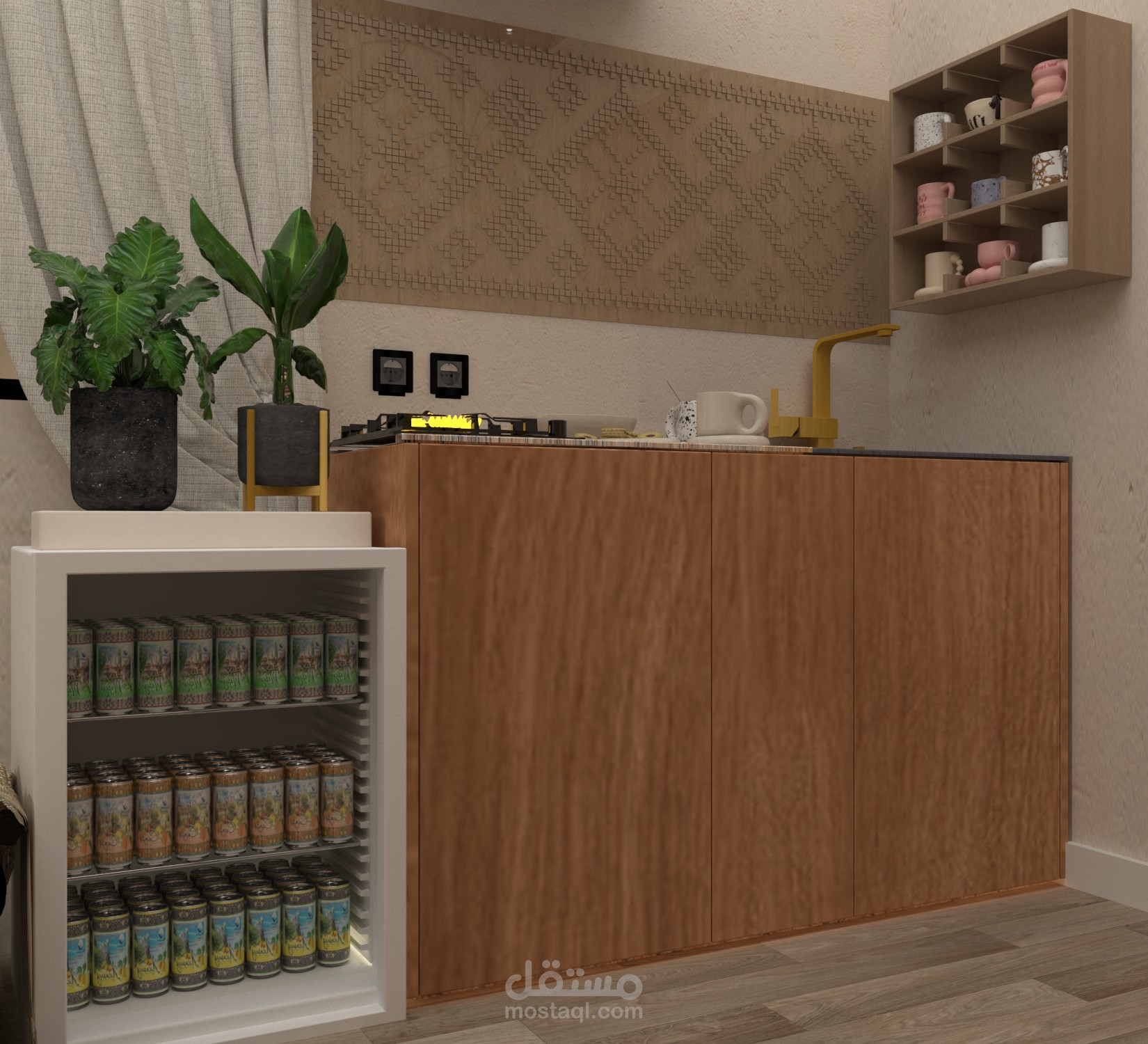 This security room is thoughtfully designed to accommodate the villa’s guard with both comfort and practicality in mind. The compact space includes essential functions: a bed, wardrobe, mini desk, kitchenette, and a private bathroom efficiently arranged to maximize usability without crowding the room.