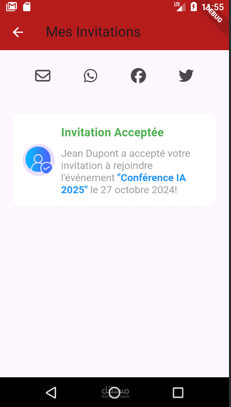 يتيح لك التطبيق فرصة دعوة أصدقائك بكل سهولة.