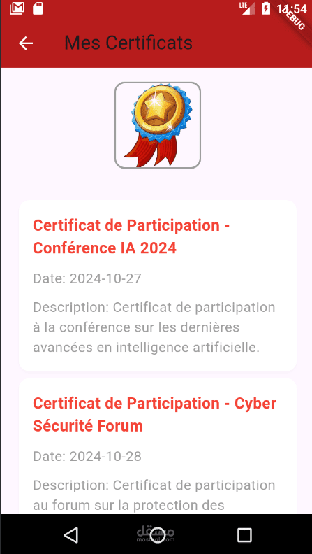 يمكن للمستخدمين الحصول على شهادات للفعاليات التي حضروها.