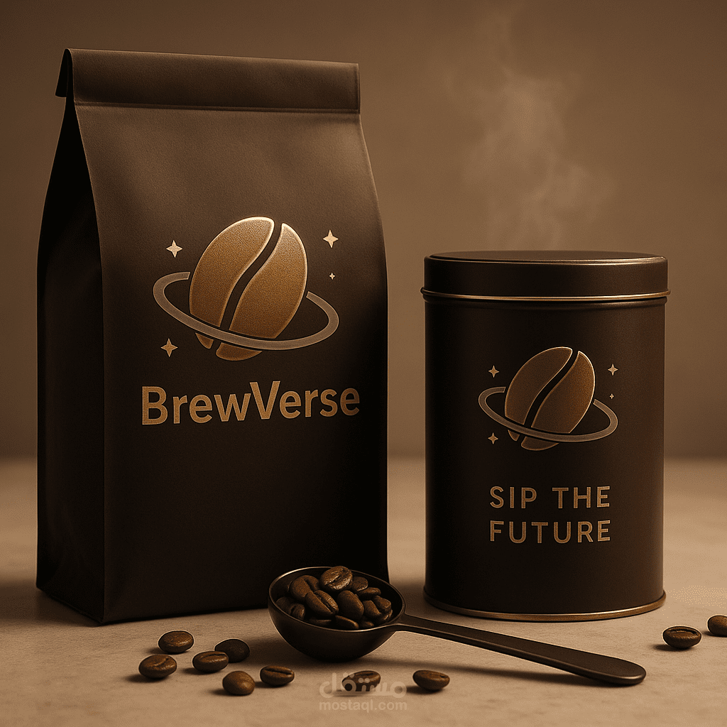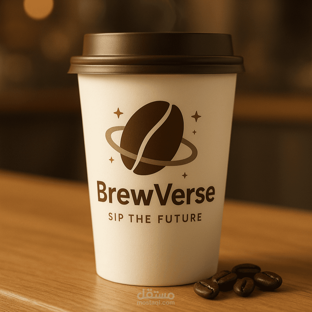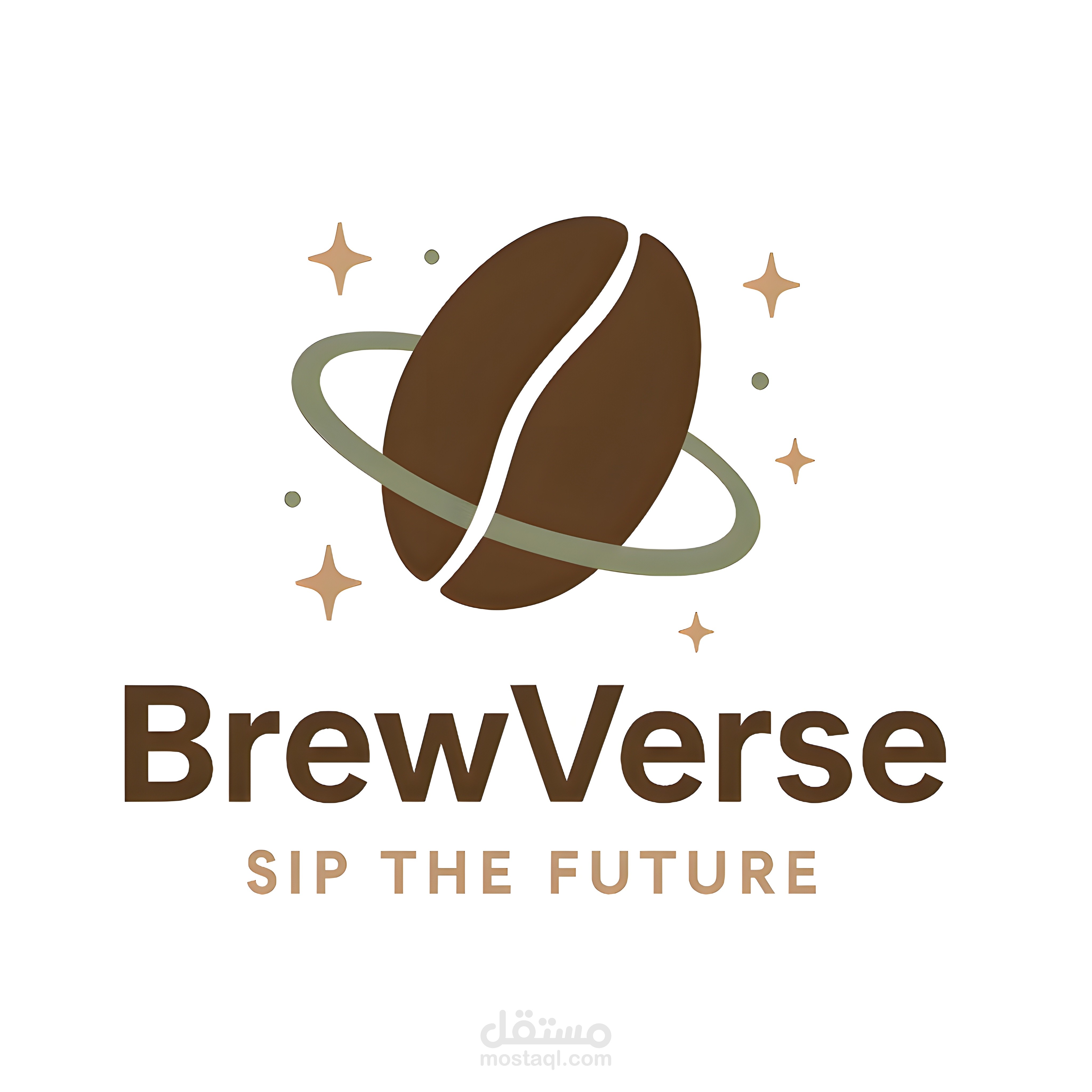 شعار BrewVerse يجسد رؤية مستقبلية لعالم القهوة، حيث يلتقي شغف المذاق الأصيل بروح الابتكار والتكنولوجيا في هوية بصرية حديثة ومعبّرة.