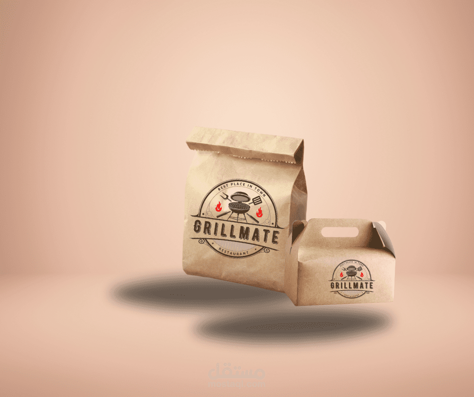 تم تصميم هذا الشعار لمطعم مشويات وهمي باسم GrillMate، بأسلوب جريء وتقليدي يعكس حرارة الشواء والطابع الريفي للمكان.
