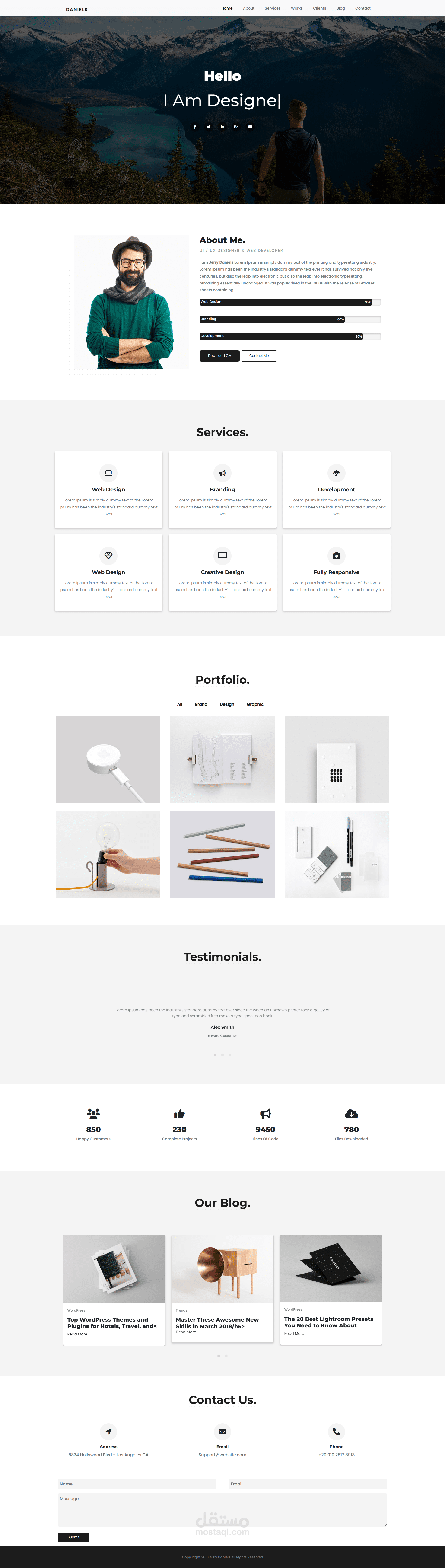 قمت بتنفيذ التصميم بأسلوب يجمع بين البساطة والعصرية مع ضمان تجربة مستخدم سلسة وجذابة. الصفحة متوافقة مع مختلف الأجهزة وتُظهر المحتوى بشكل منسق واحترافي. باستخدام HTML – CSS – Bootstrap