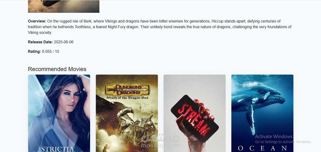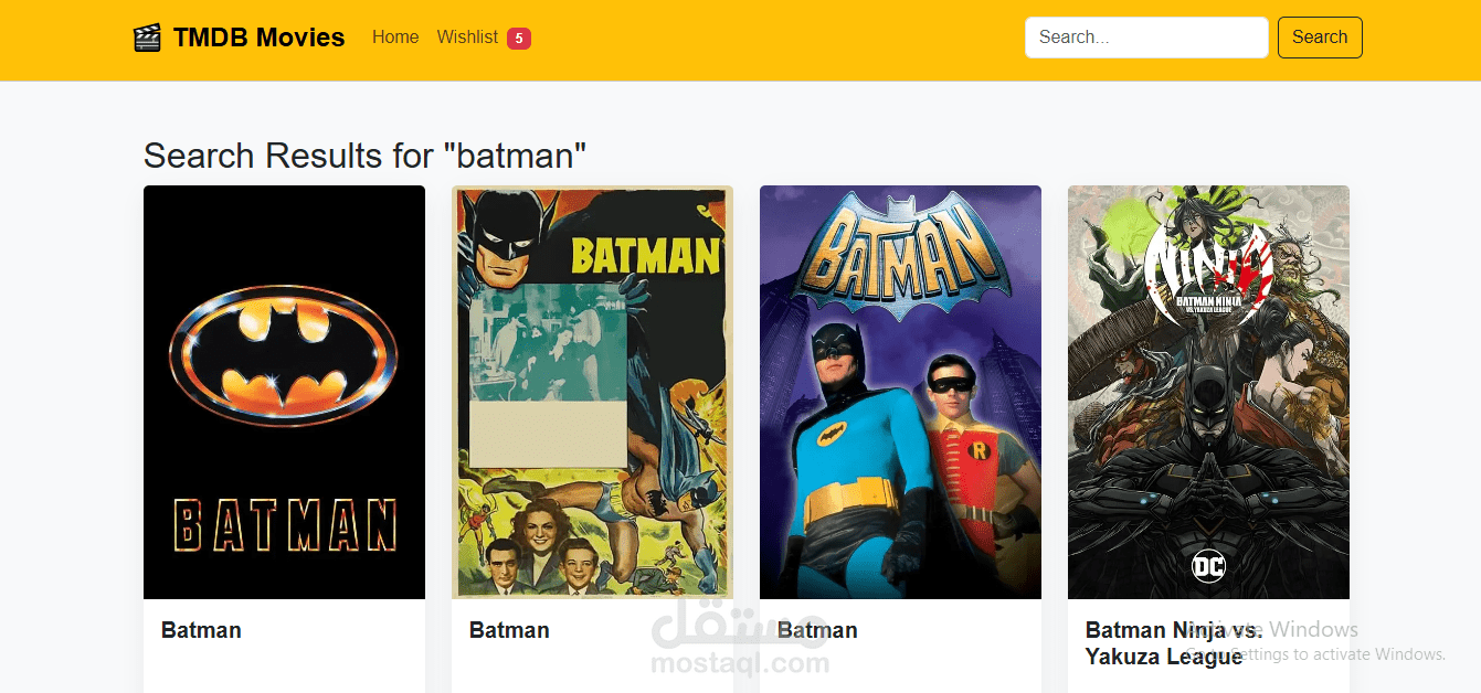 الموقع به خاصيه البحث و احضار الافلام عن طريق استخدام restful API