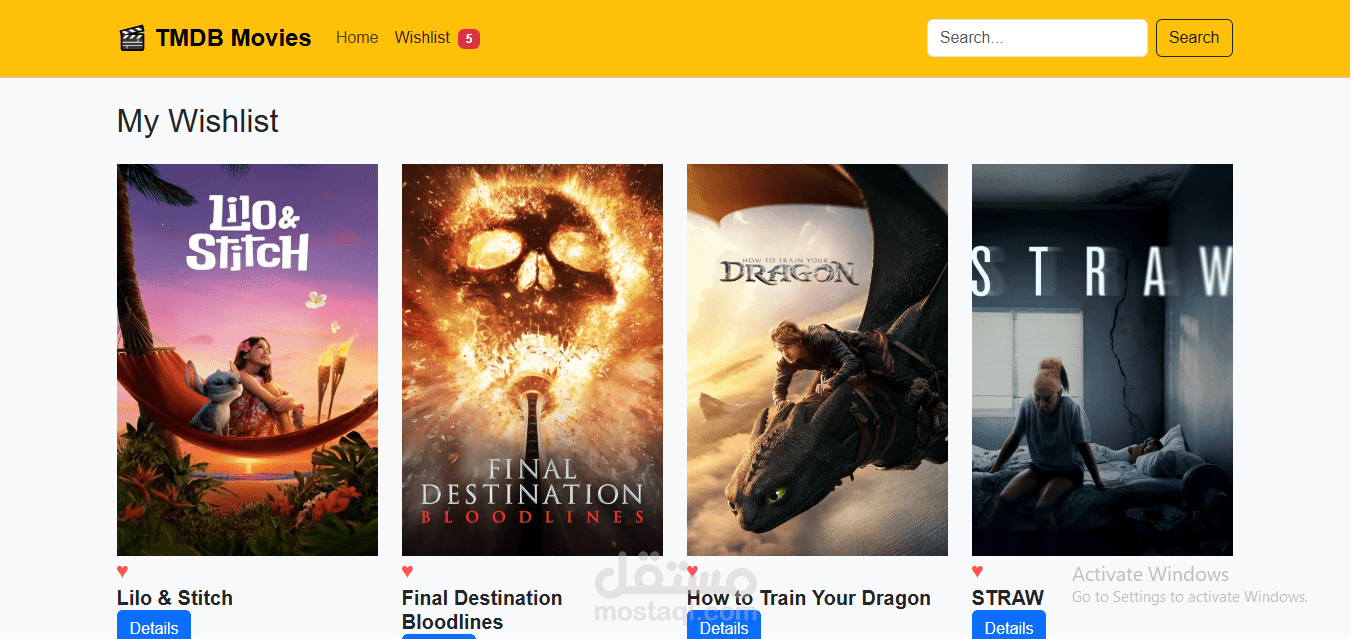 الموقع يحتوى على صفحه wishlist يمكنكم اضافه الافلام المفضله او للمشاهده لاحقا فى اي وقت