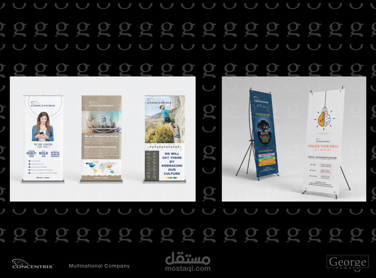 Designed an interactive roll-up banner for Concentrix, a global company based in California. The project was executed for the Egypt branch, showcasing the company’s core values and internal guidelines—suitable for corporate conferences and events.