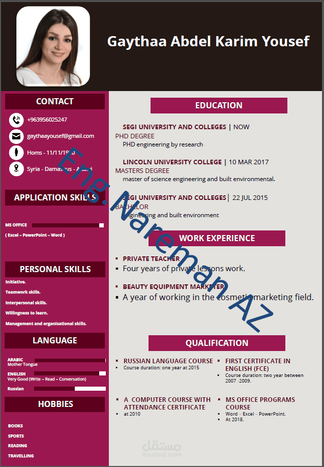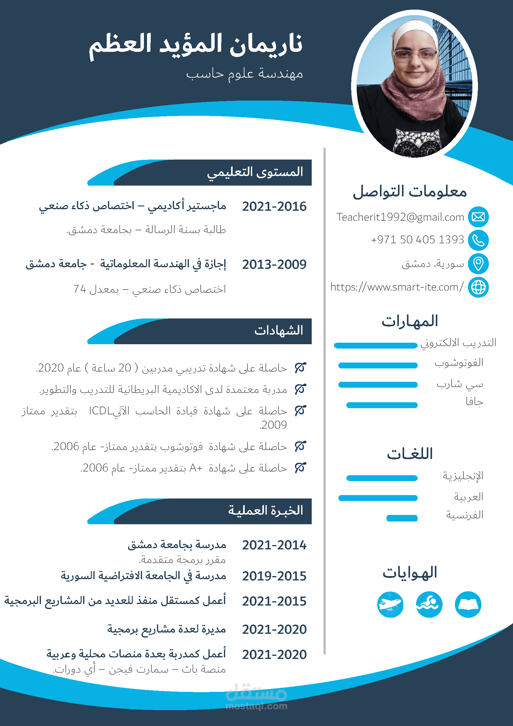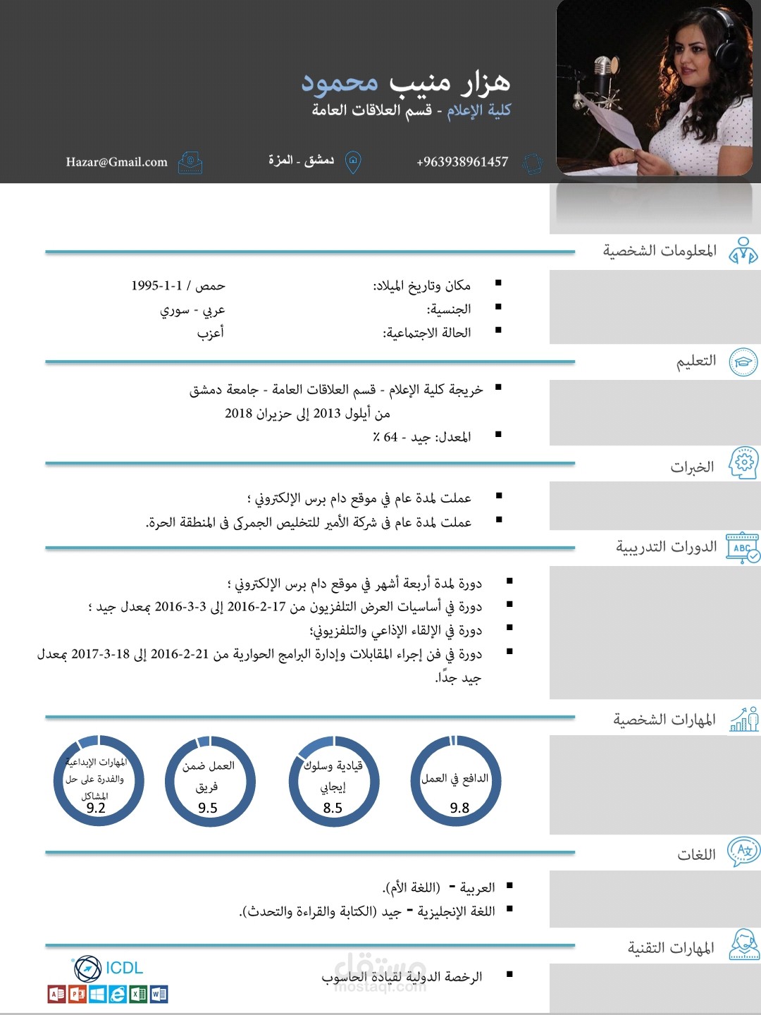 مرفق عدة نماذج قمت بها لسيرة ذاتية انفوغرافيك ( Curriculum Vitae )،أتمنى أن تنال إعجابك .