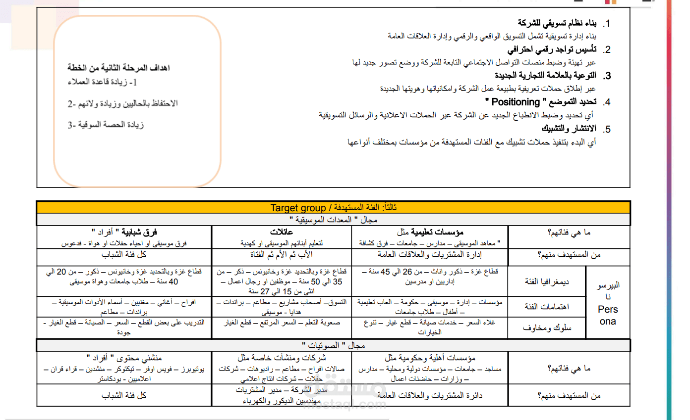 2. تحليل وتحديد الفئة المستهدفة (Target Audience) وتقسيمها إلى شرائح دقيقة (مؤسسات، عائلات، منشئي محتوى، فرق شبابية).