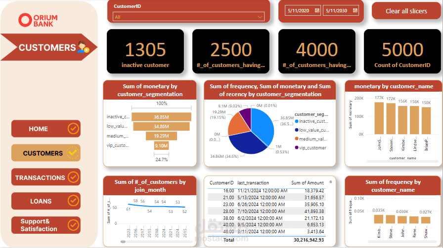 بعد عملية تحليل البيانات باستخدام SQL server تم عمل dashboard لعرض اهم النتائج المهمة من تحليل بيانات العملاء