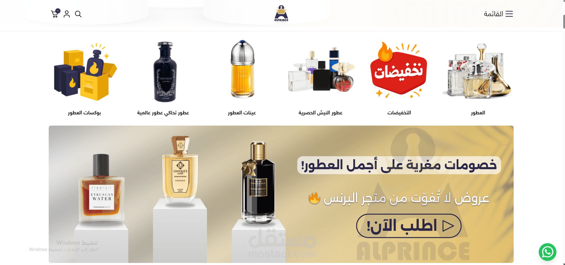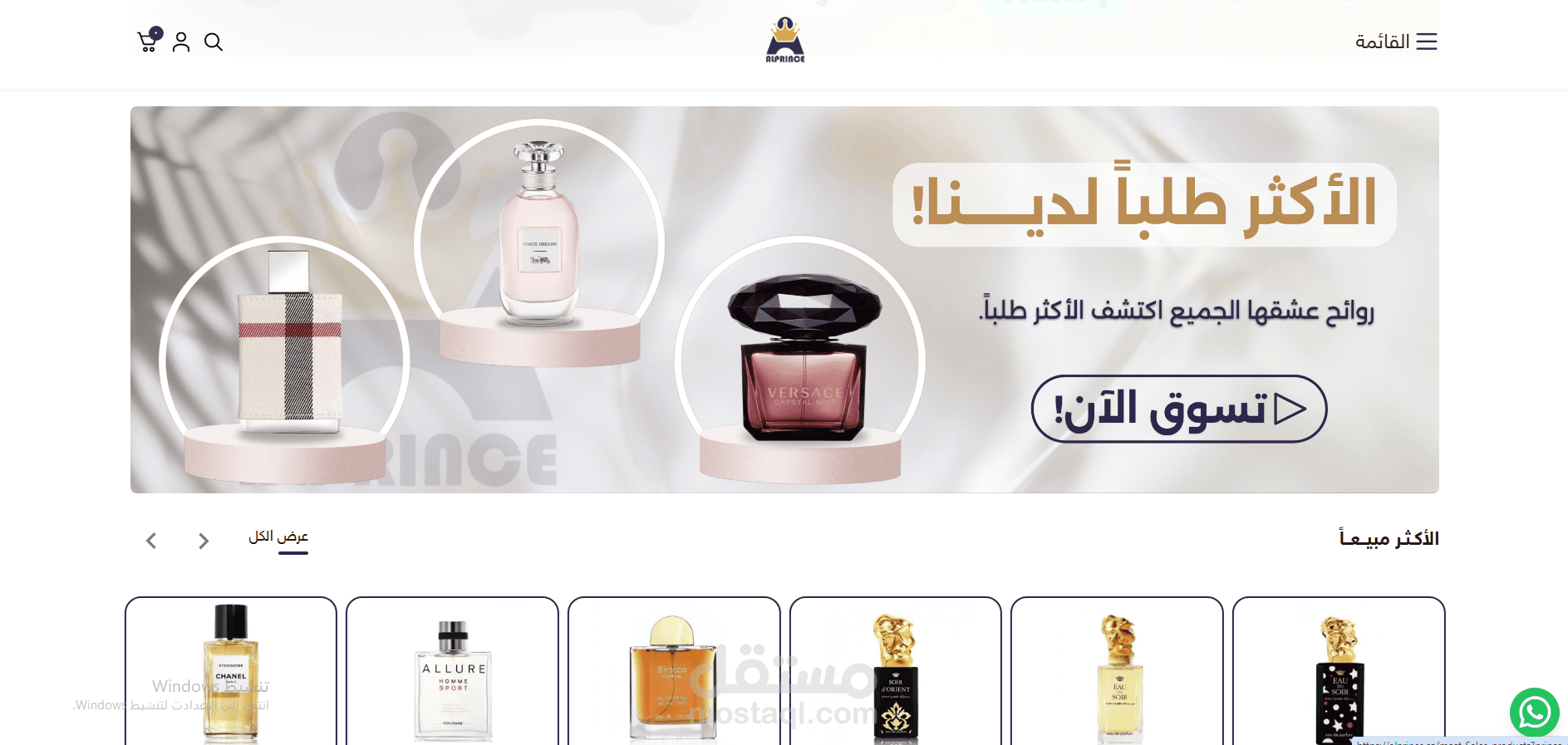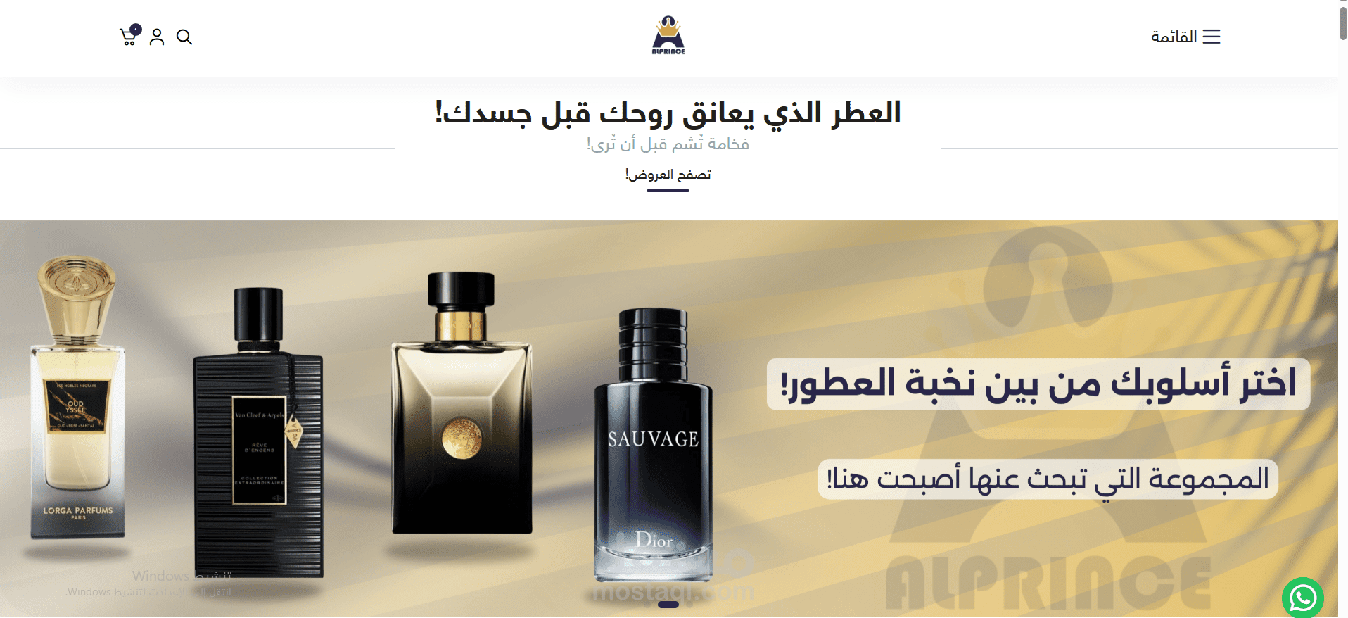تصميم وتجهيز متجر البرنس alprince للعطور على ثيم ملاك على منصة سلة Salla