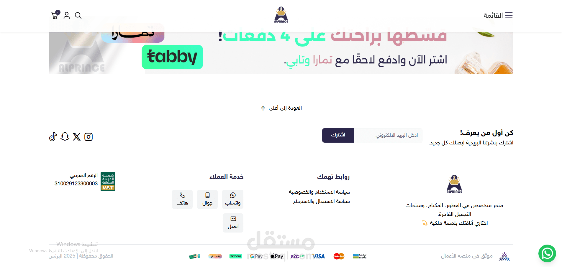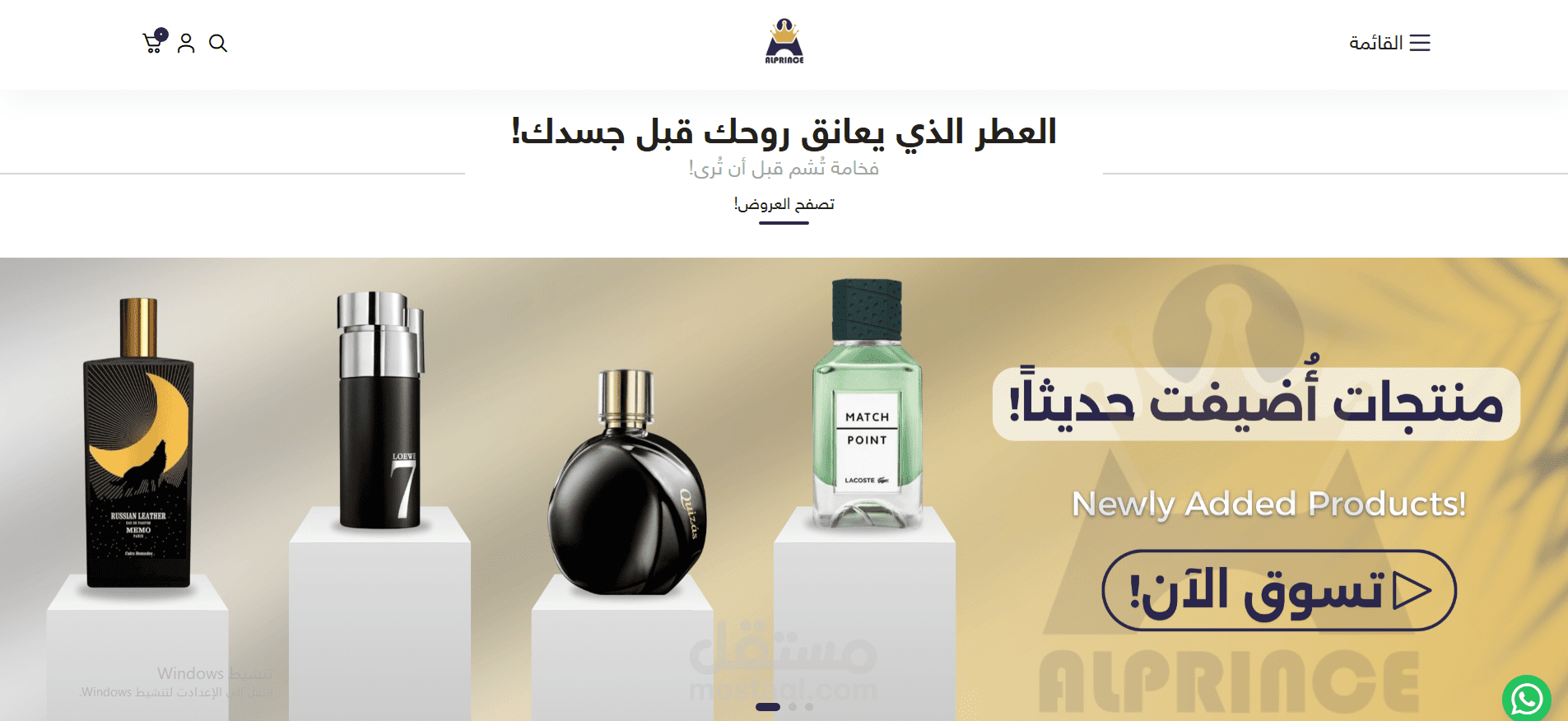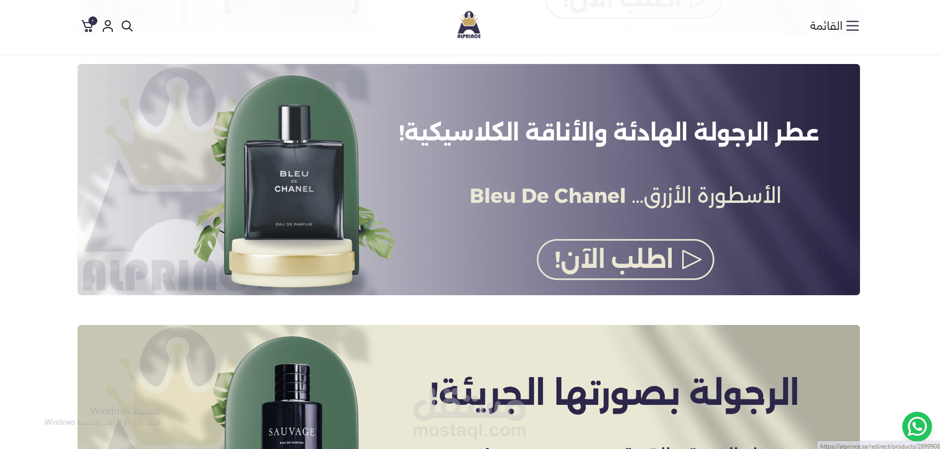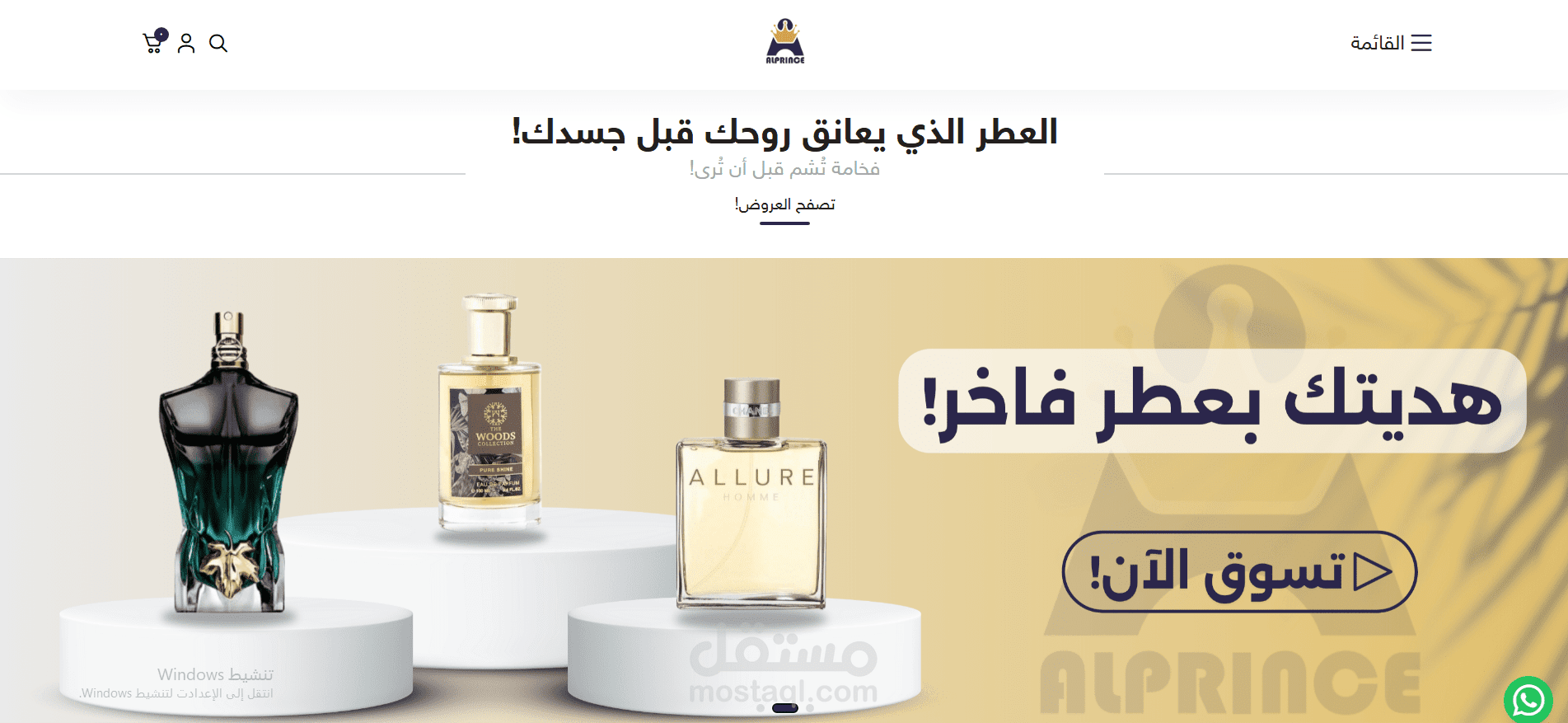 تصميم وتجهيز متجر البرنس alprince للعطور على ثيم ملاك على منصة سلة Salla
