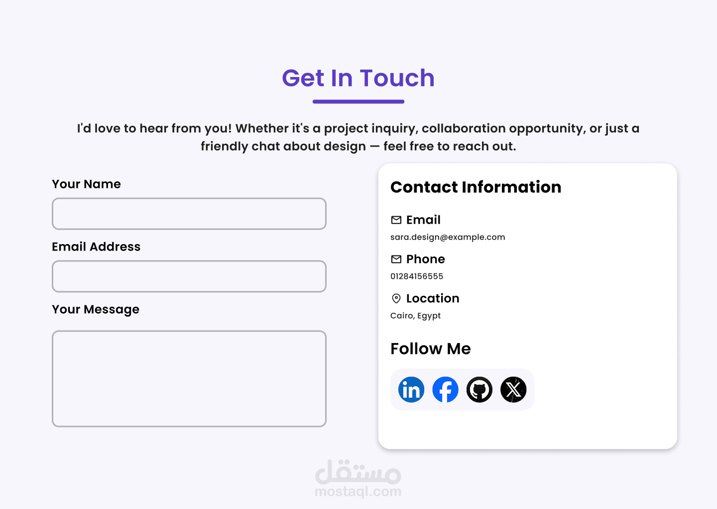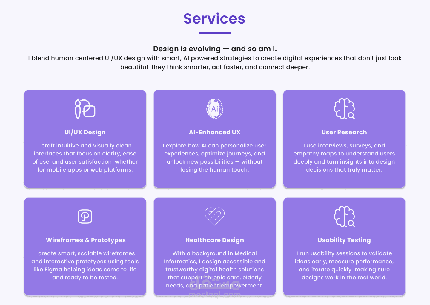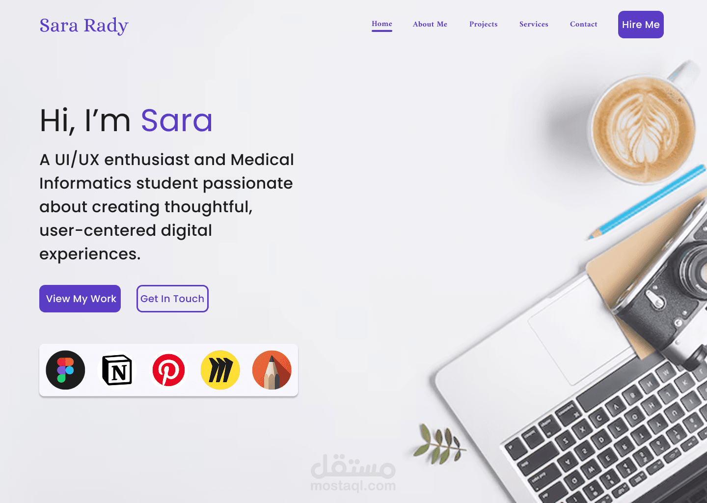 صممت هذا الموقع الشخصي كجزء من هويتي كمصممة UI/UX. الهدف من التصميم كان عرض مهاراتي ومشاريعي بطريقة منظمة، بسيطة، وتعكس شخصيتي كمصممة تهتم بالتفاصيل.