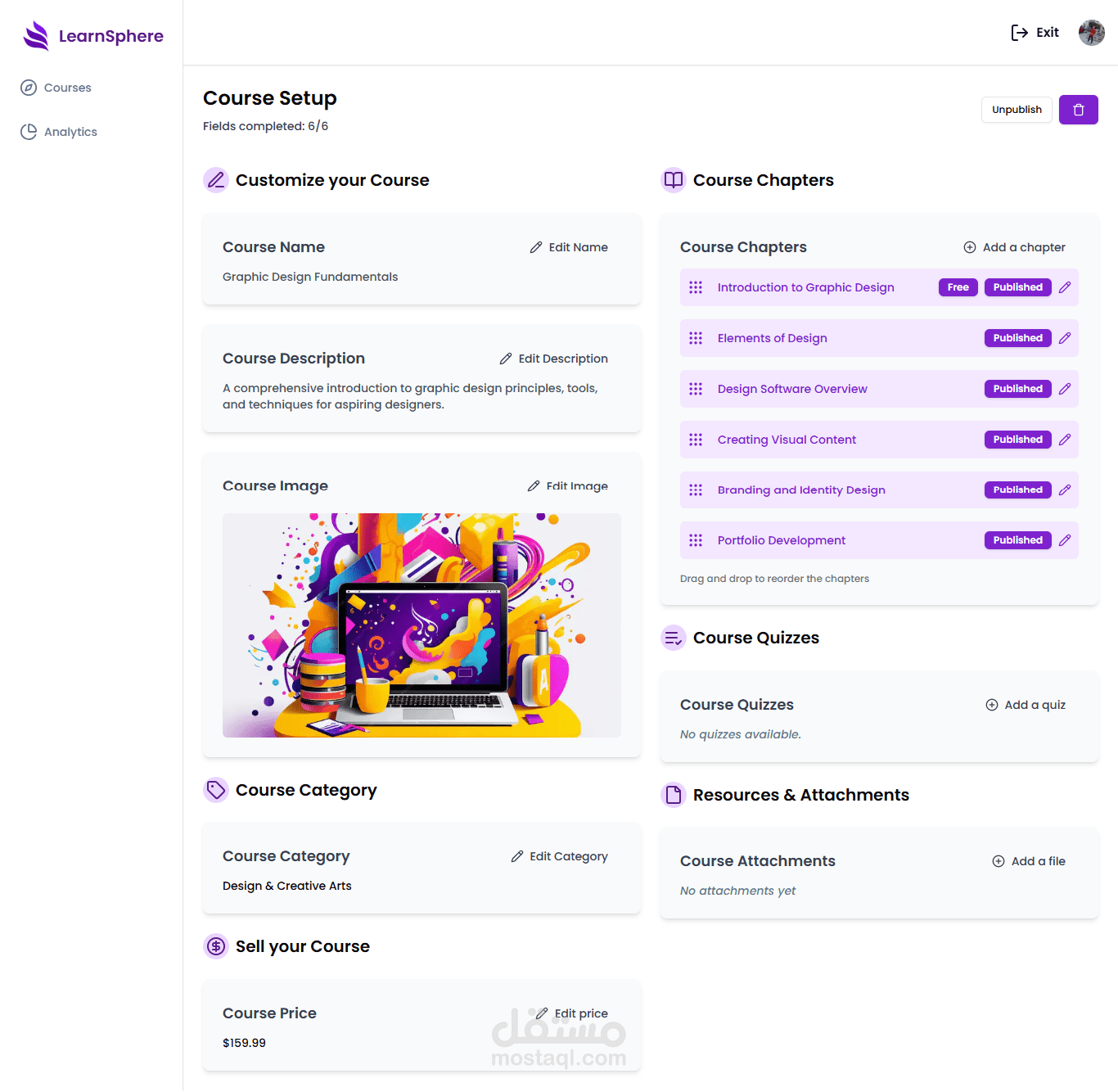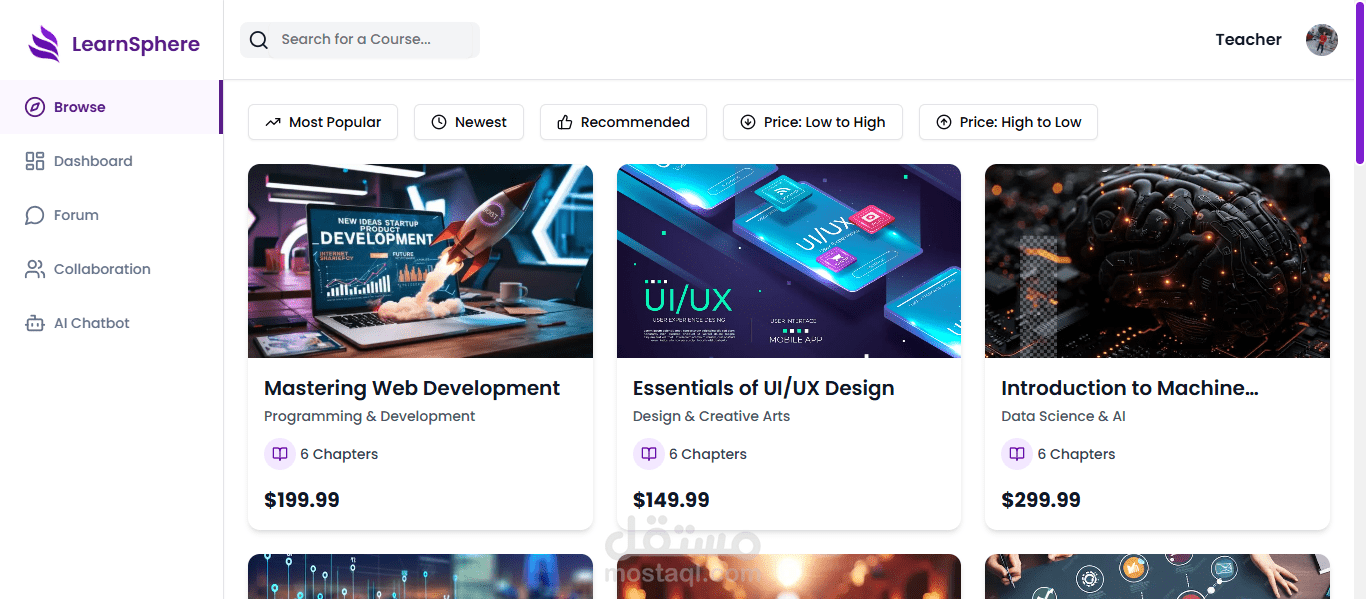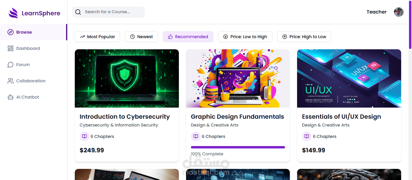 LearnSphere هي منصة متقدمة للتعلّم الإلكتروني تم تطويرها باستخدام أحدث التقنيات مثل Next.js وNode.js وTailwind CSS، مدعومة بقواعد بيانات MongoDB ونظام المصادقة Clerk. تهدف إلى إحداث نقلة نوعية في التعليم عبر الإنترنت من خلال مجموعة متكاملة من الميزات الذكية والتفاعلية، أبرزها: