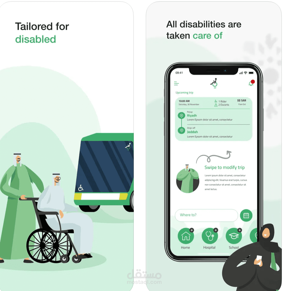 This App is created especially for any handicapped person, with well-chosen and trained drivers, and vehicle ready and safe for each disability type