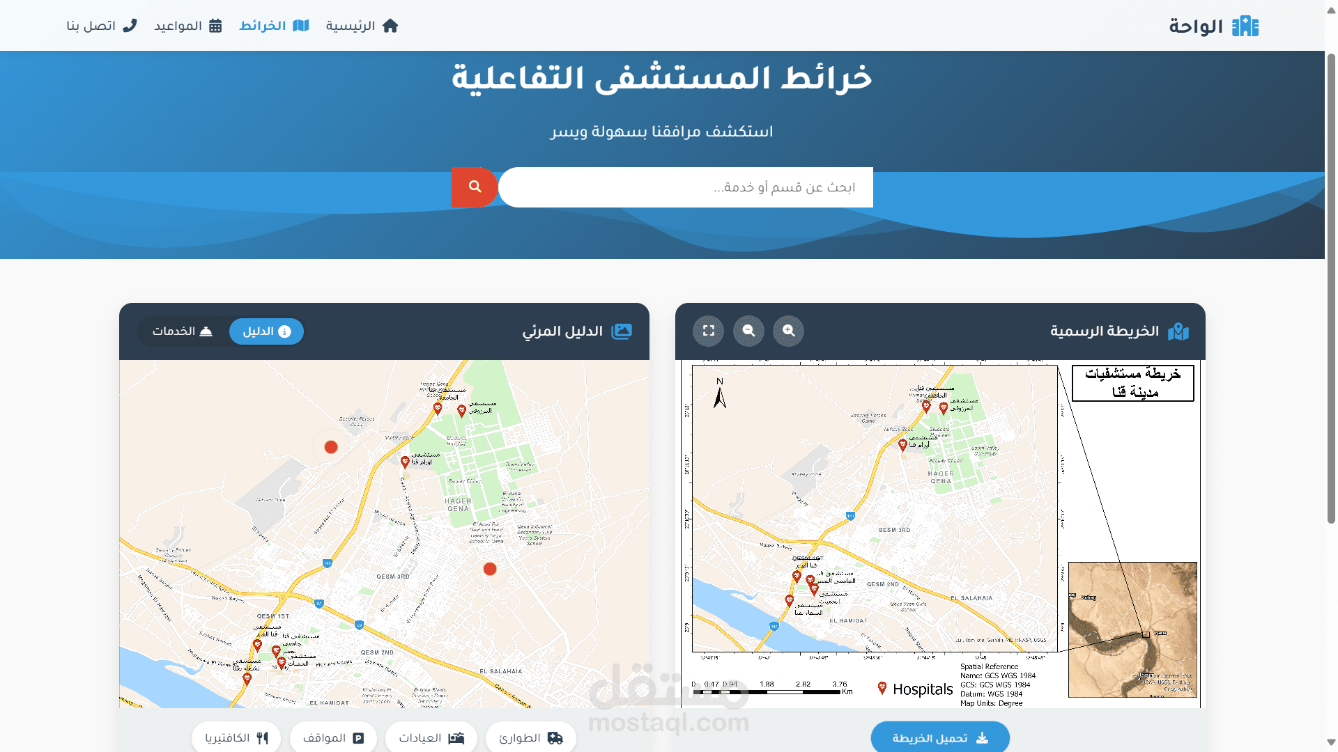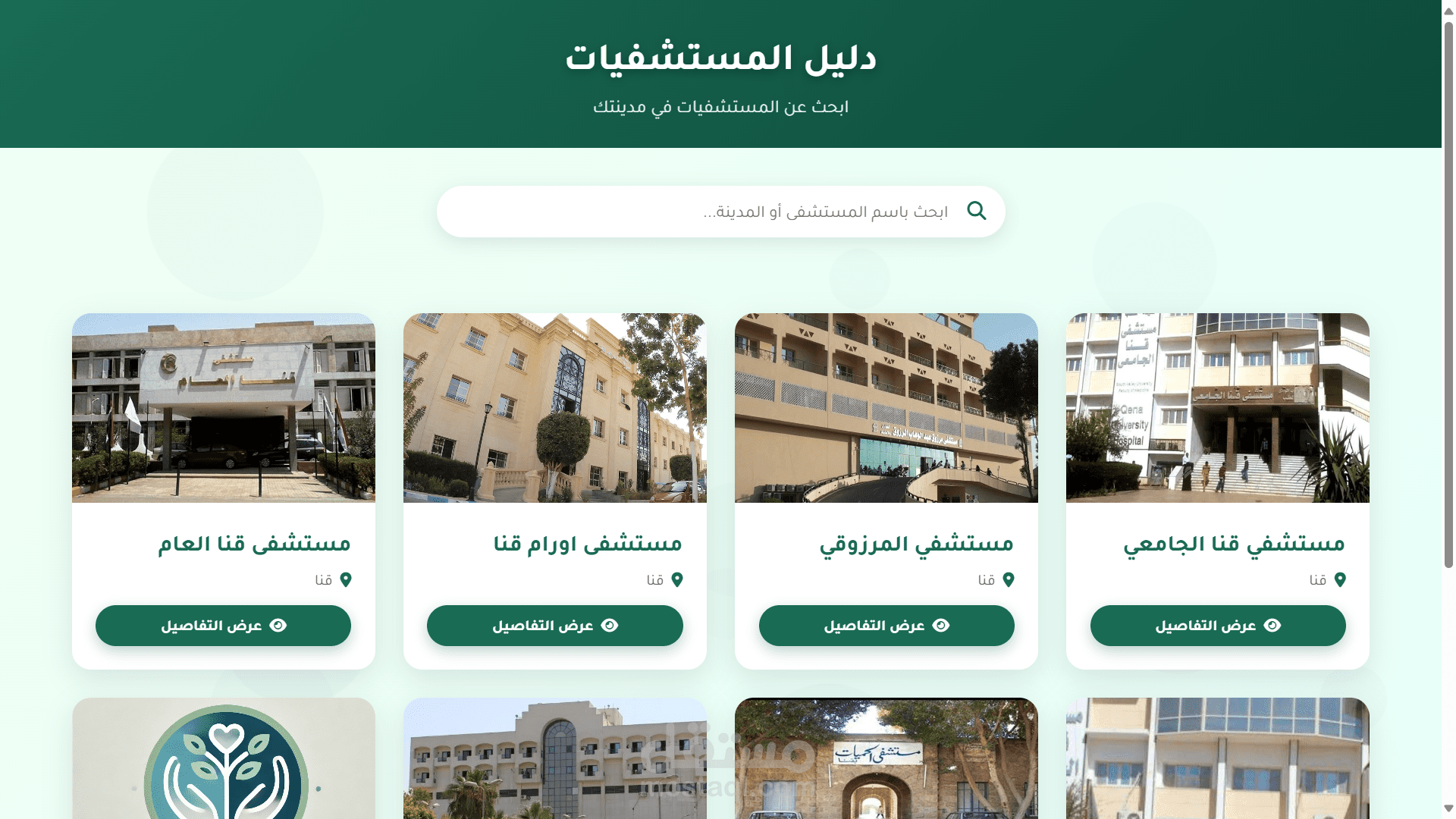 Dynamic hospital listing with search and filter options