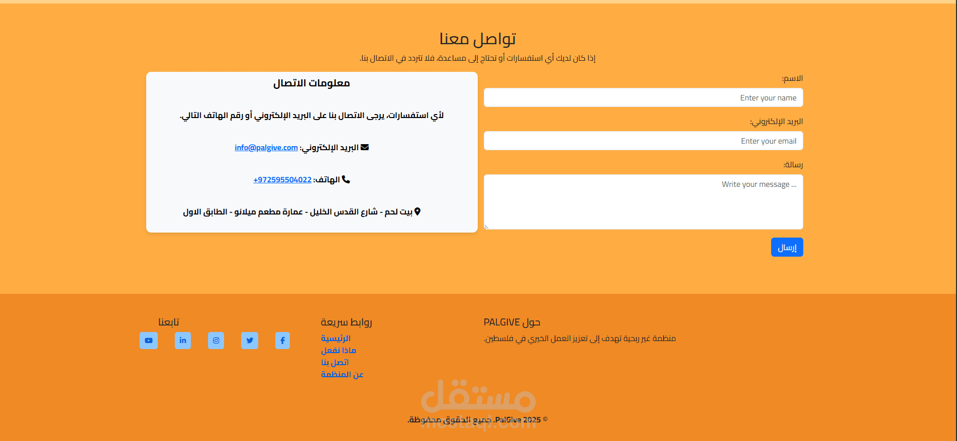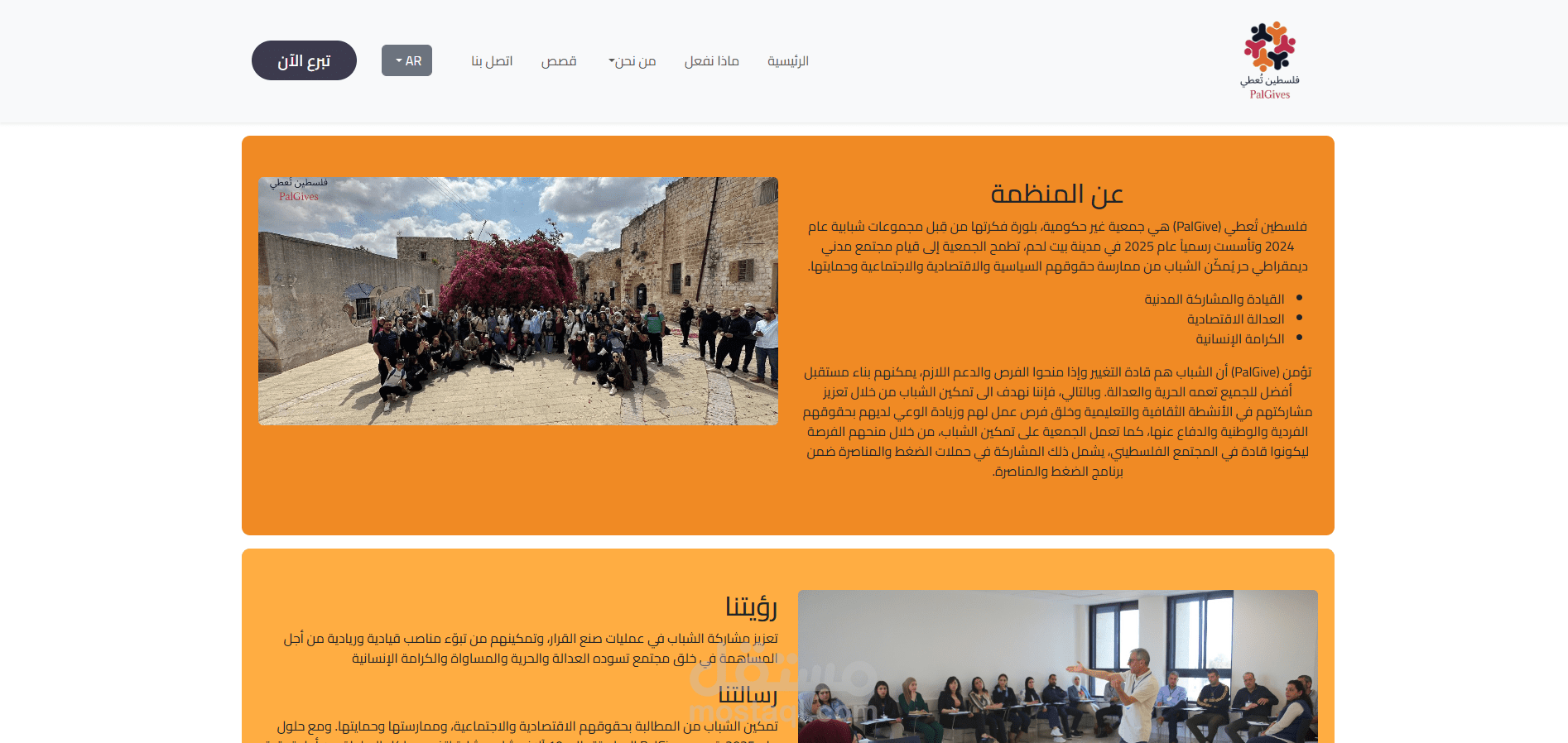 "عملت على تصميم وتطوير الموقع الرسمي لمنظمة فلسطين تُعطي، وهي منظمة غير ربحية تهدف لتمكين الشباب الفلسطيني. استخدمت تقنيات HTML، CSS، Bootstrap، وJavaScript لإنشاء موقع سريع، متجاوب، وسهل الاستخدام. شمل العمل صفحات تعريفية، نظام تبرعات آمن، وتكامل مع منصات التواصل. ركزت على إبراز الهوية البصرية للمنظمة وإيصال رسالتها بوضوح من خلال التصميم."