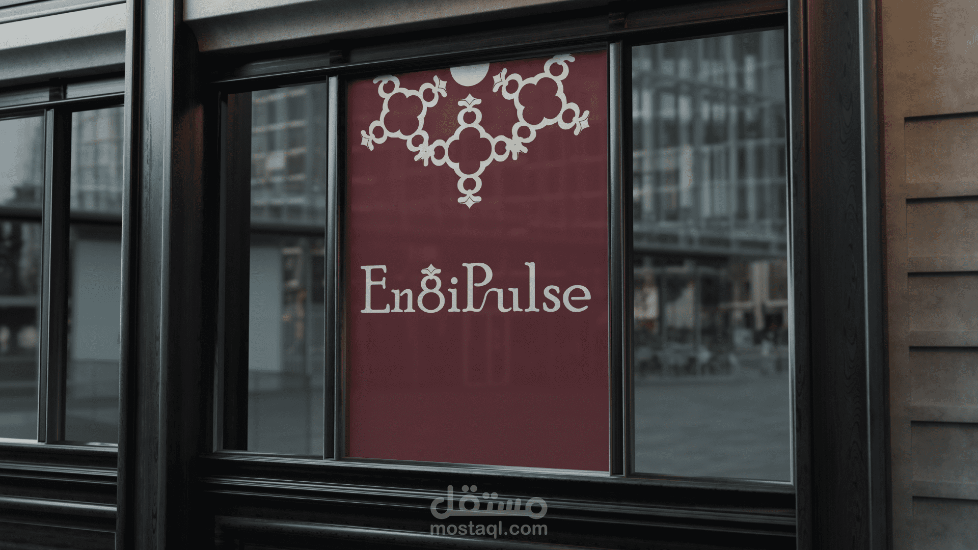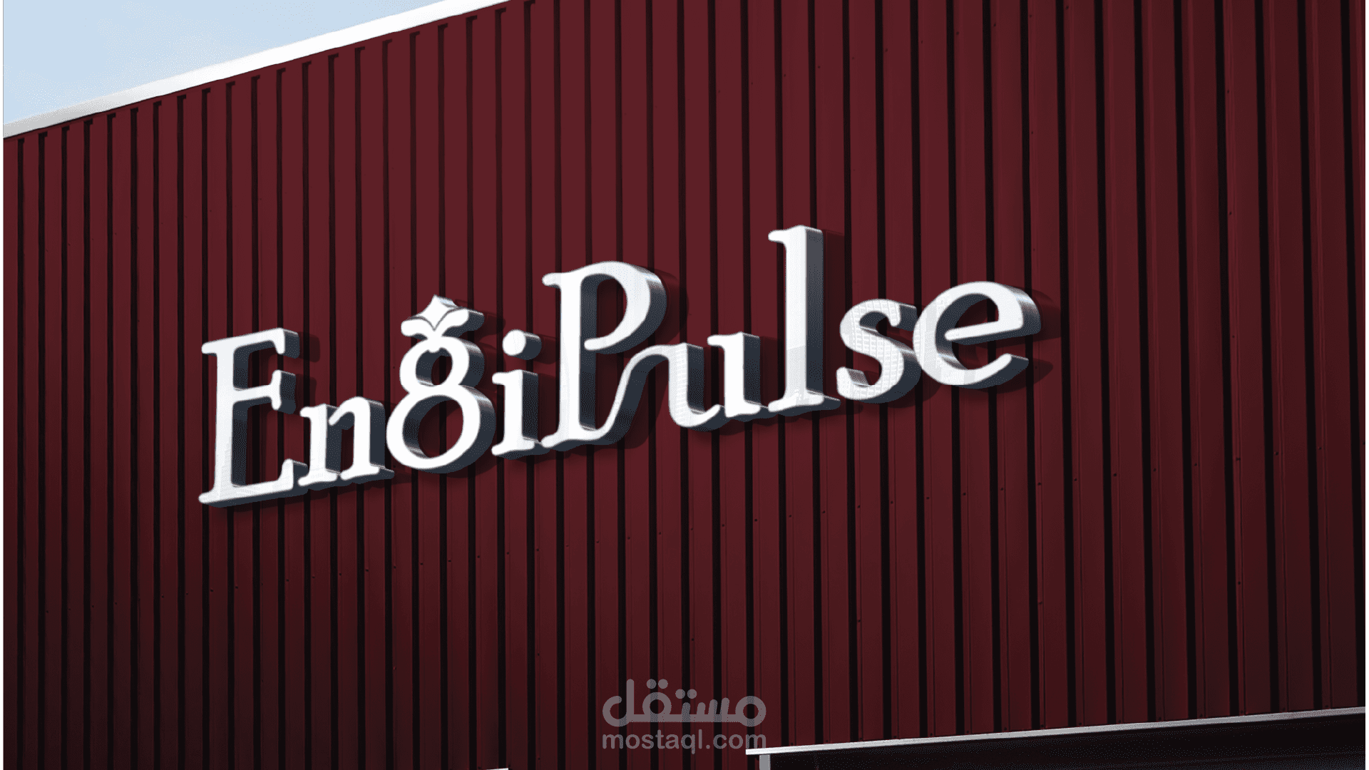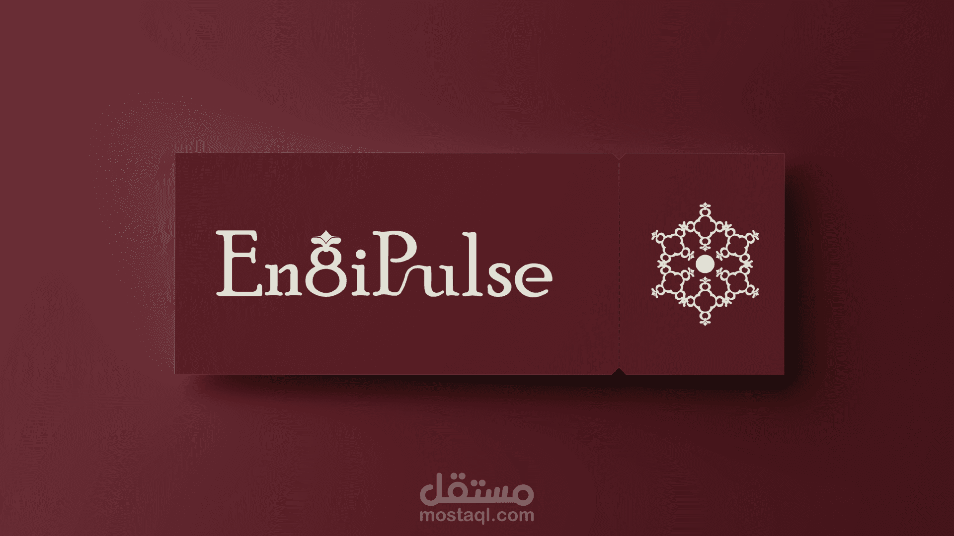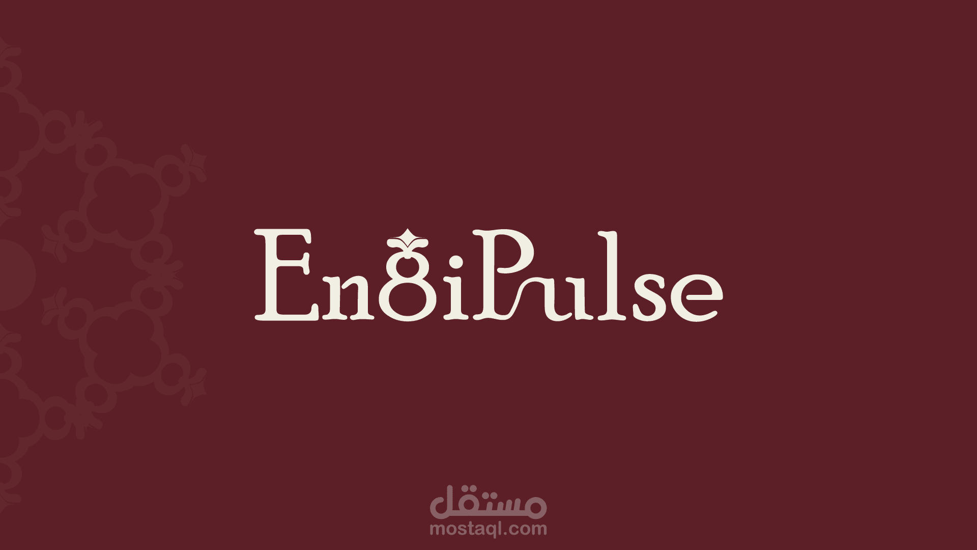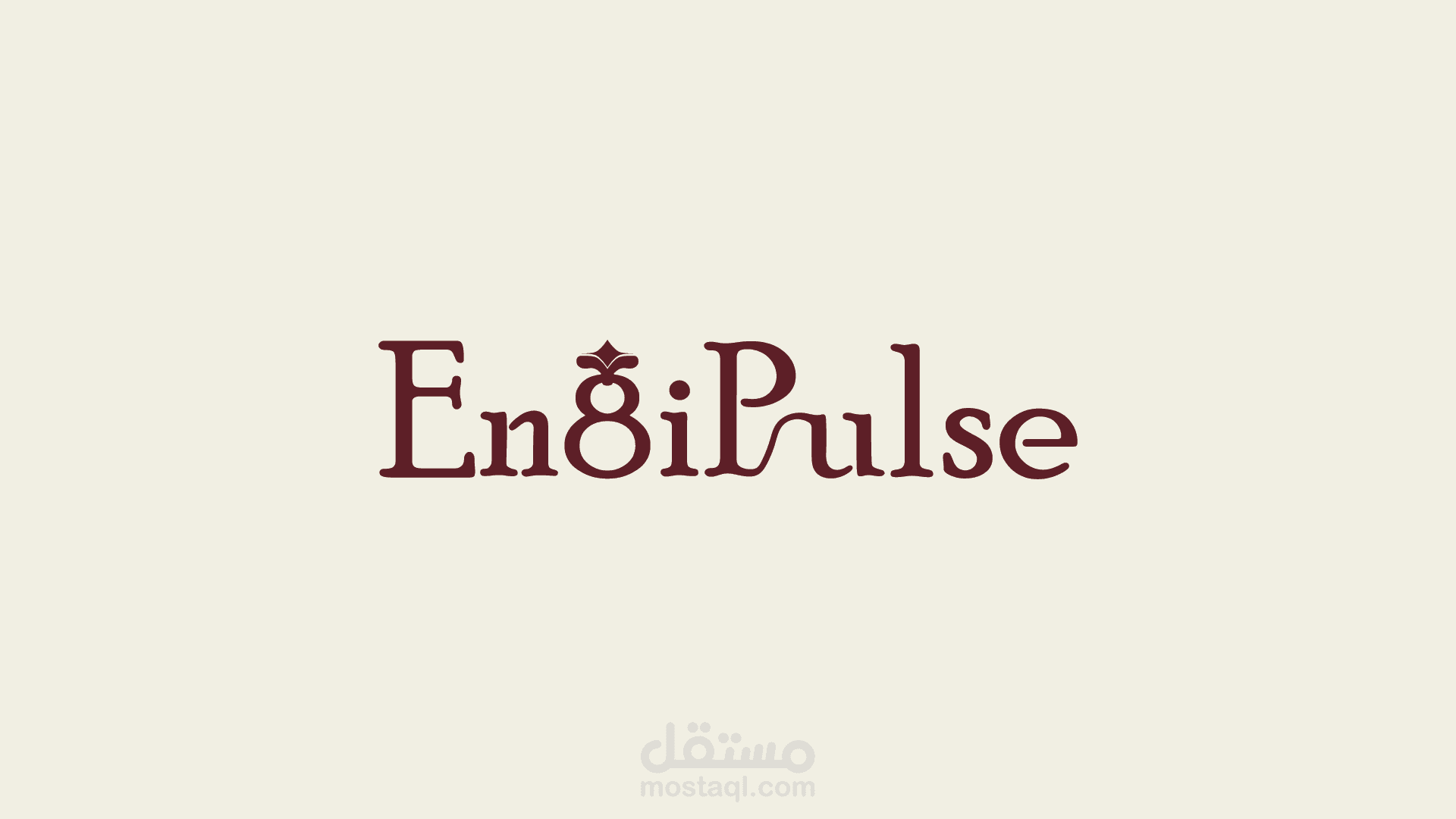 شعار "EngiPulse" يتميز بتصميم أنيق واحترافي، حيث يدمج الإبداع في حرف "g" والذي يظهر كخاتم يعلوه تاج صغير، ما يضفي لمسة ملكية . استخدام اللون الكريمي مع الخلف، إنتاجها من استخدام العلامة التجارية الكريمي مع الخلفية العنابية يعكس الفخامة والوضوح، بينما يتم تحميل طابع الزخرفة الخاص بالشعارات فنياً من هوية