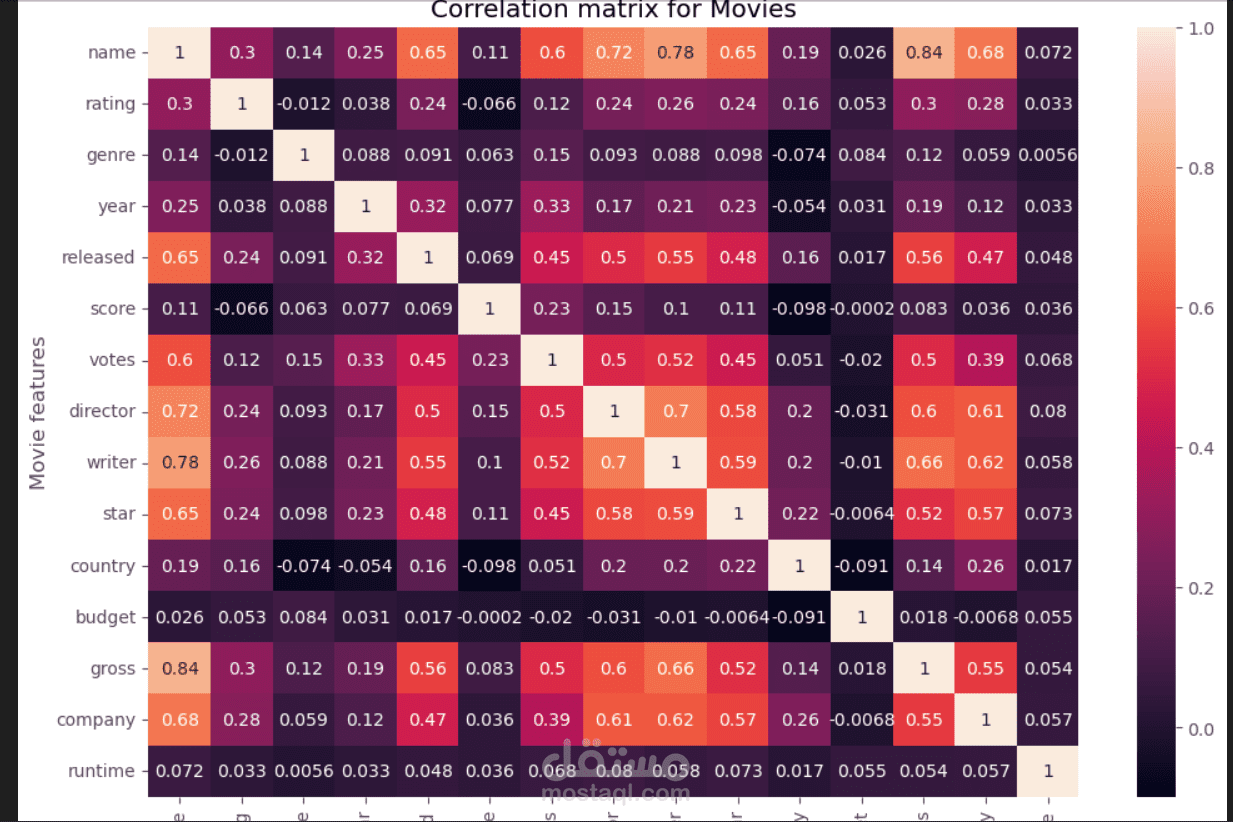 هذا العمل عبارة عن تحليل شامل للارتباط (Correlation Analysis) باستخدام لغة بايثون. يهدف التحليل إلى فهم العلاقات بين المتغيرات المختلفة ضمن مجموعة بيانات الأفلام. يتضمن العمل الخطوات التالية: