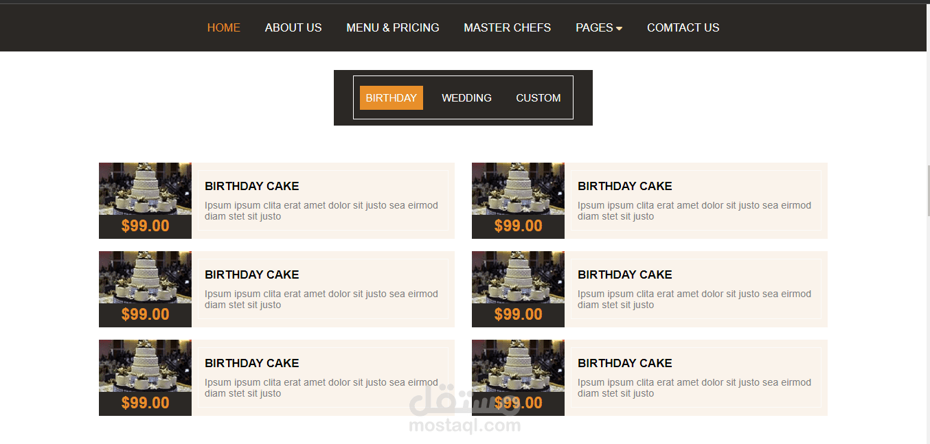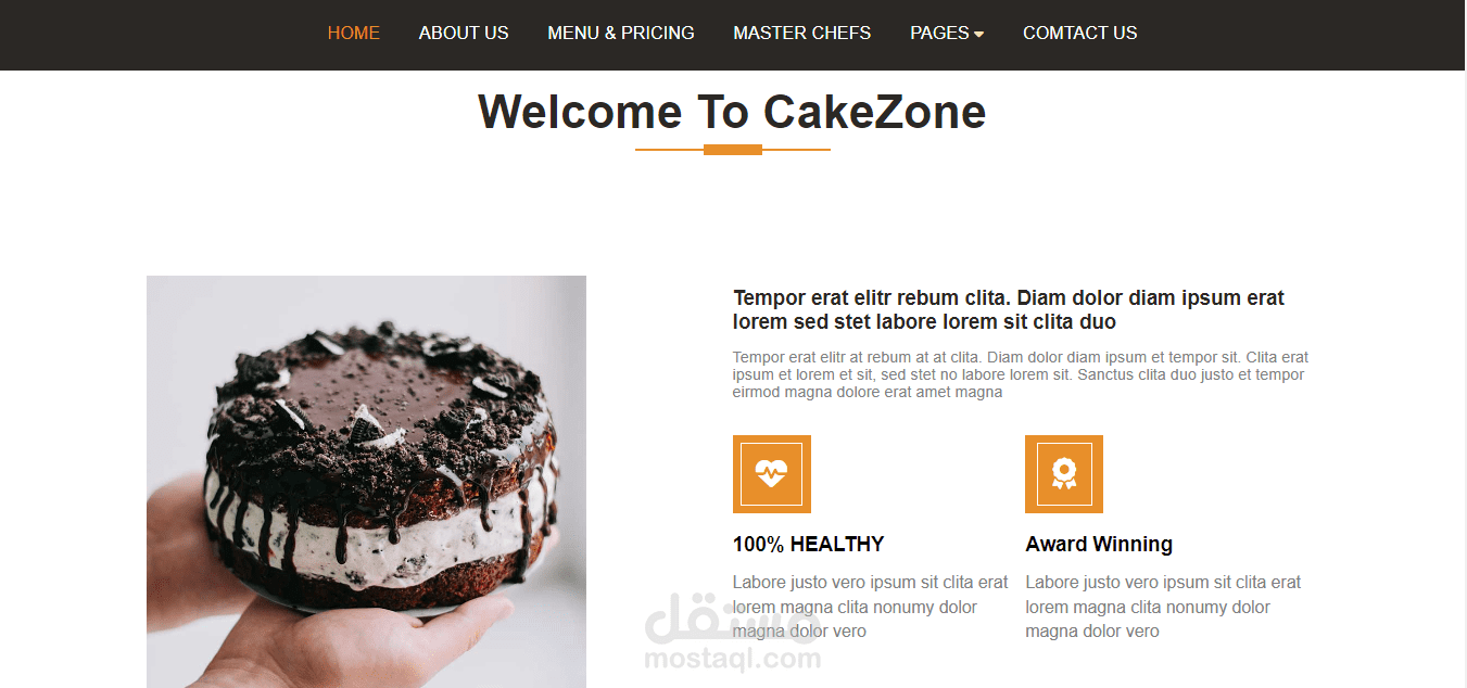 تم تصميم CAKEZONE بواجهة عصرية سهلة الاستخدام، مع عرض المنتجات بطريقة جذابة ومنظمة، مما يجعله نموذجًا احترافيًا لمتجر إلكتروني متخصص في بيع الحلويات ويمكن تطويره لاحقًا ليصبح نظام طلبات متكامل.