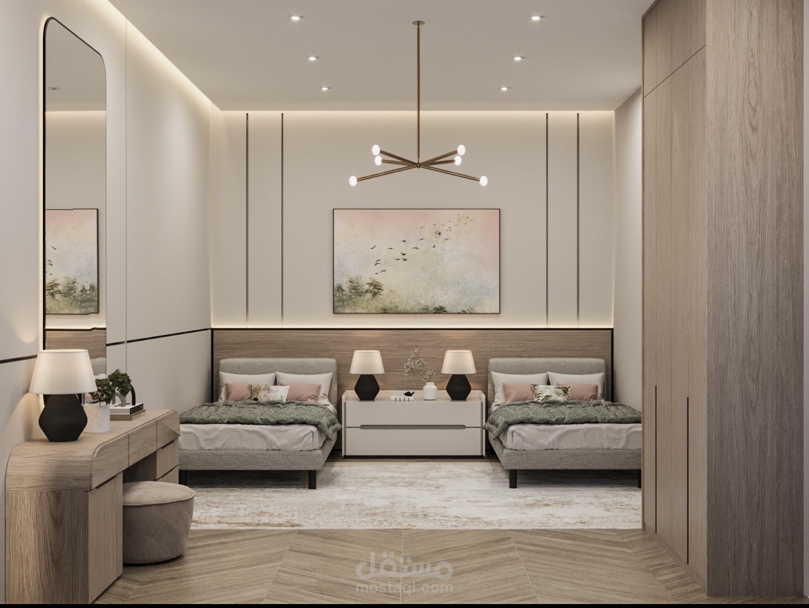 تصميم مودرن بسيط بالوان هادئه حسب متطلبات العميل