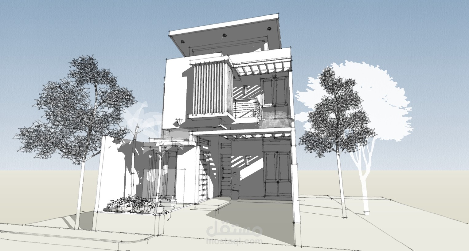 تم التصميم المعماري للشاليه بالاضافة الى الديكور الداخلي، كما تم تصميم الحدائق المحيطة بالشاليه حسب وظائفها، واعداد جميع المخططات اللازمة للتنفيذ..