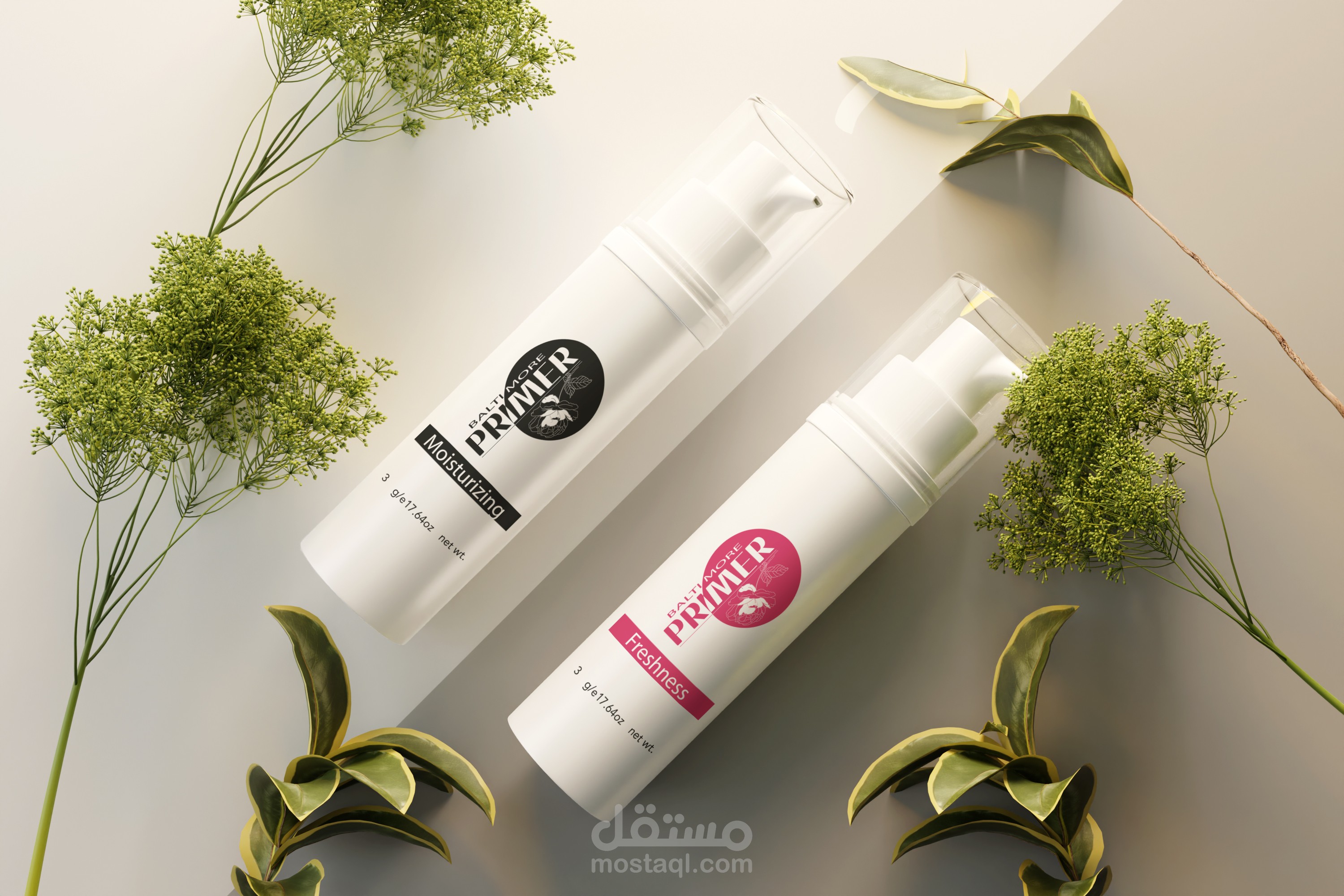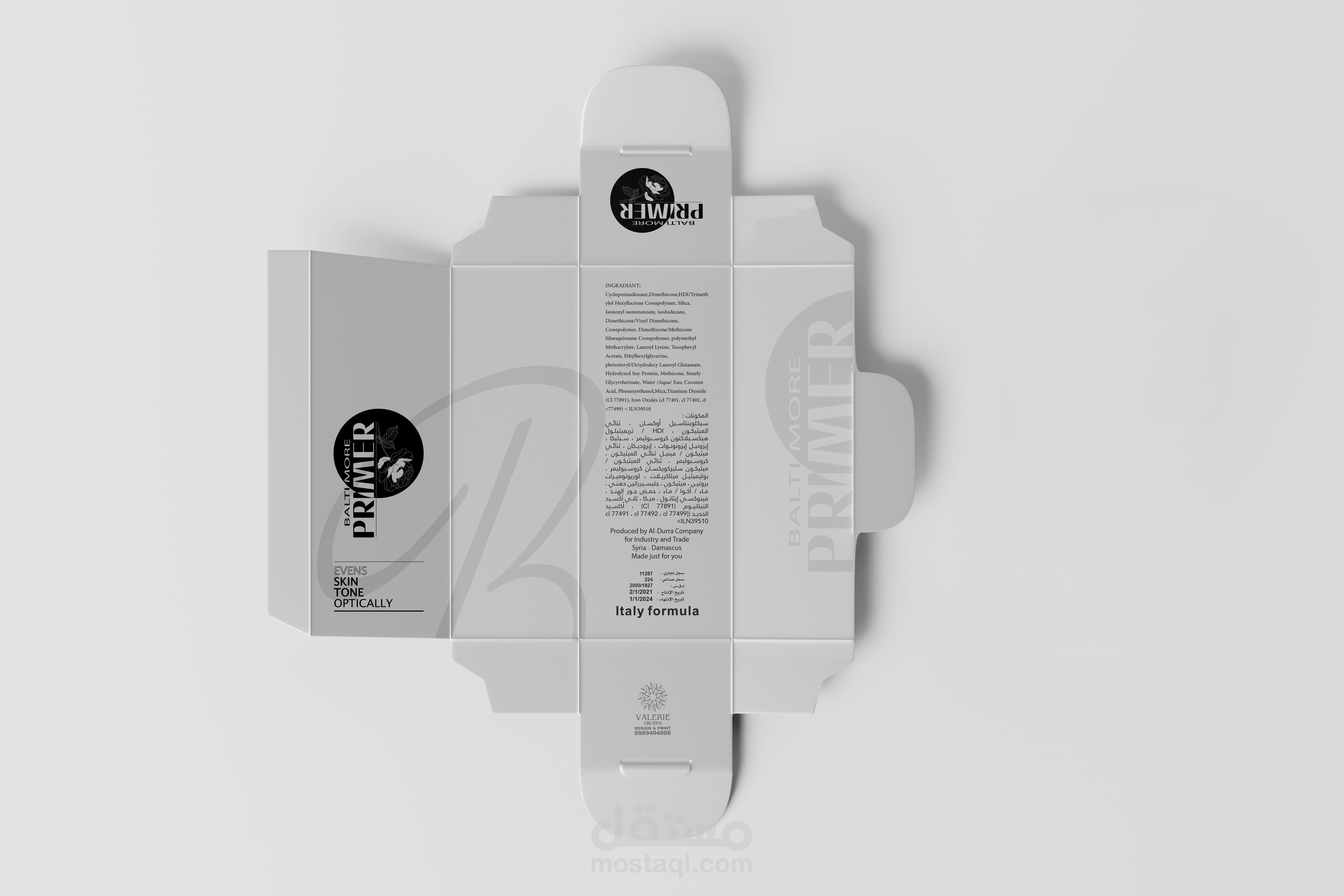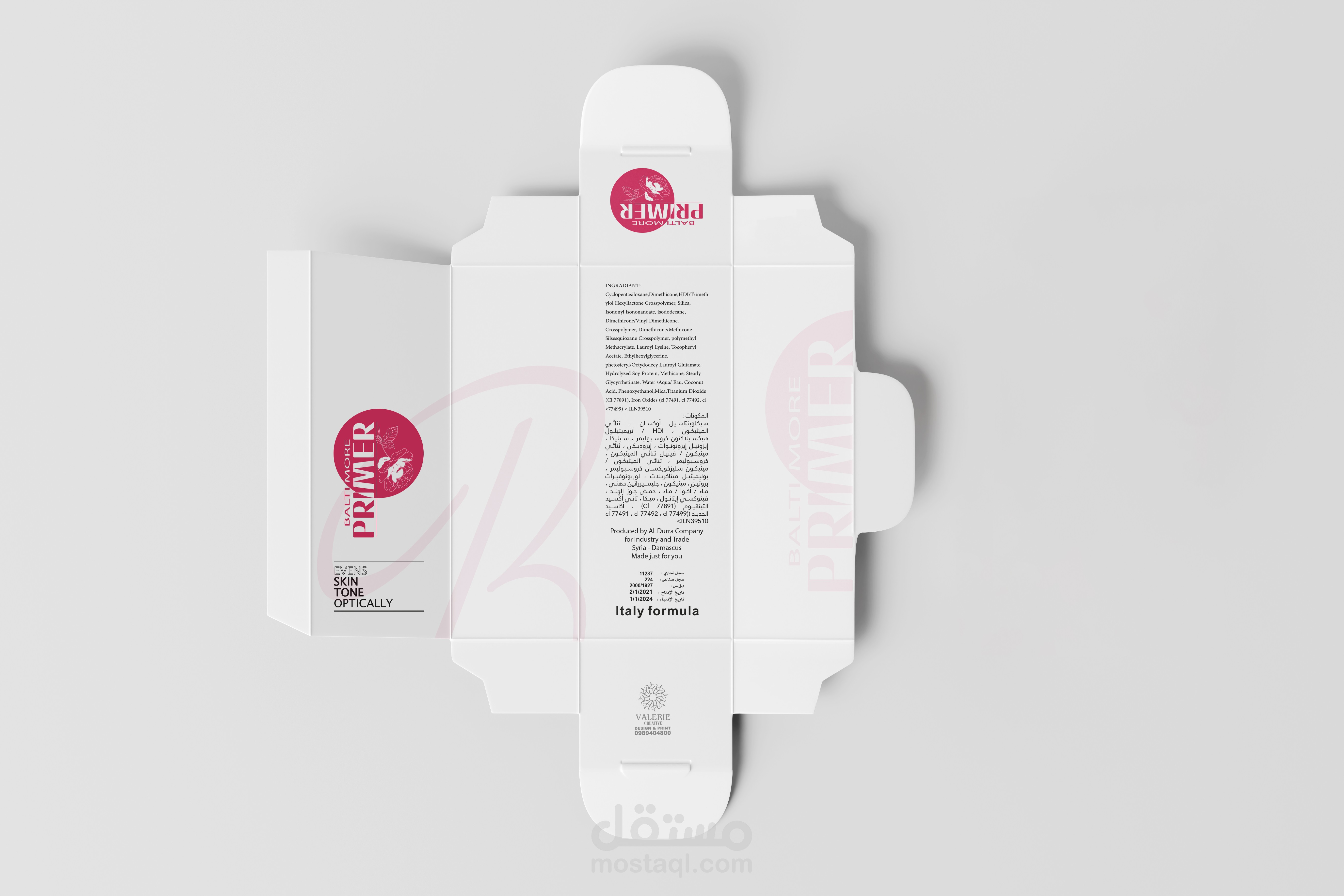 - تصميم علبة كرتون + تصميم مخصص للطباعة على عبوات البرايمر: عبارة عن عبوات أنيقة ومتطورة لمنتجات البرايمر.
