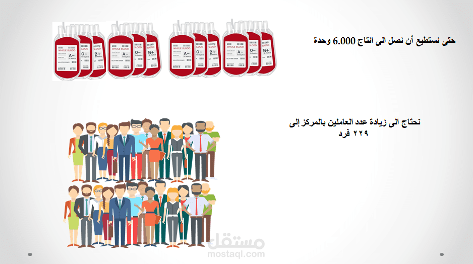 قمت بتصميم عرض تقديميى عن احد مراكز نقل الدم يوضح نشاط المركز وما ينجزه والقوى العاملة به واحتياجاته