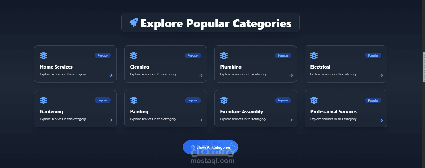 نظام إدارة الخدمات مع رفع صور، تحديد الفئات، الأسعار، وتحديد أوقات التوفر