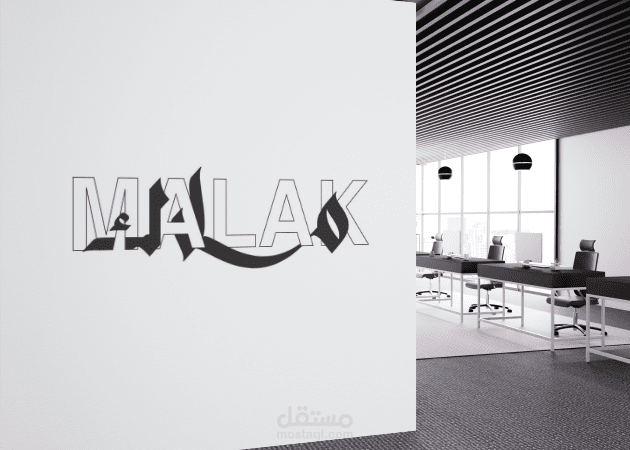 أقدم لكم تصميمًا احترافيًا ومبتكرًا لشعار يحمل اسم "MALAK"، تم تنفيذ الفكرة بأسلوب فني يدمج بين الحروف الإنجليزية والخط العربي بطريقة متناسقة وجذابة.
