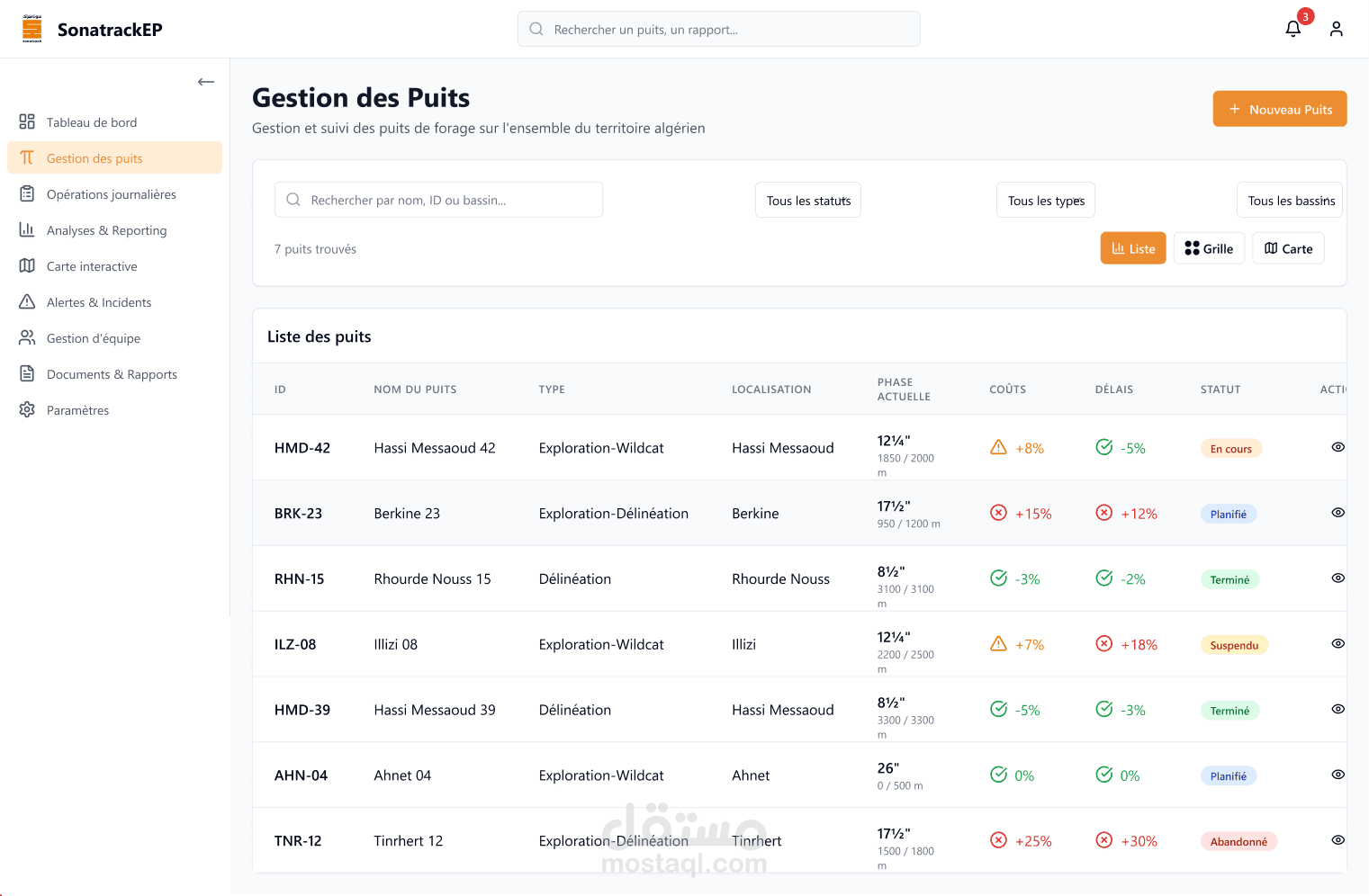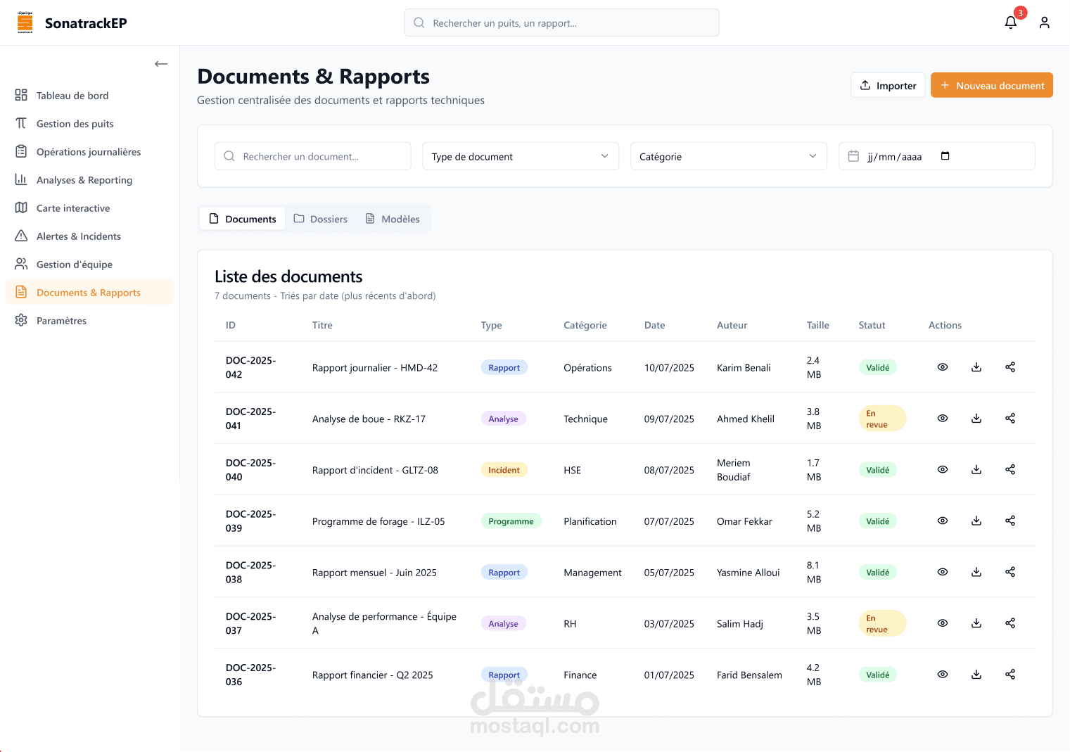 يهدف هذا النظام إلى إدارة مركزية للوثائق والتقارير الفنية الخاصة بشركة SonatrachEP. يوفر المنصة وظائف متقدمة لتتبع ومراقبة المستندات المتعلقة بالعمليات اليومية والتخطيط والتحليل المالي والإداري.