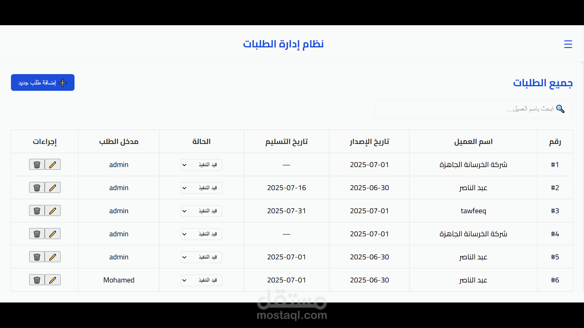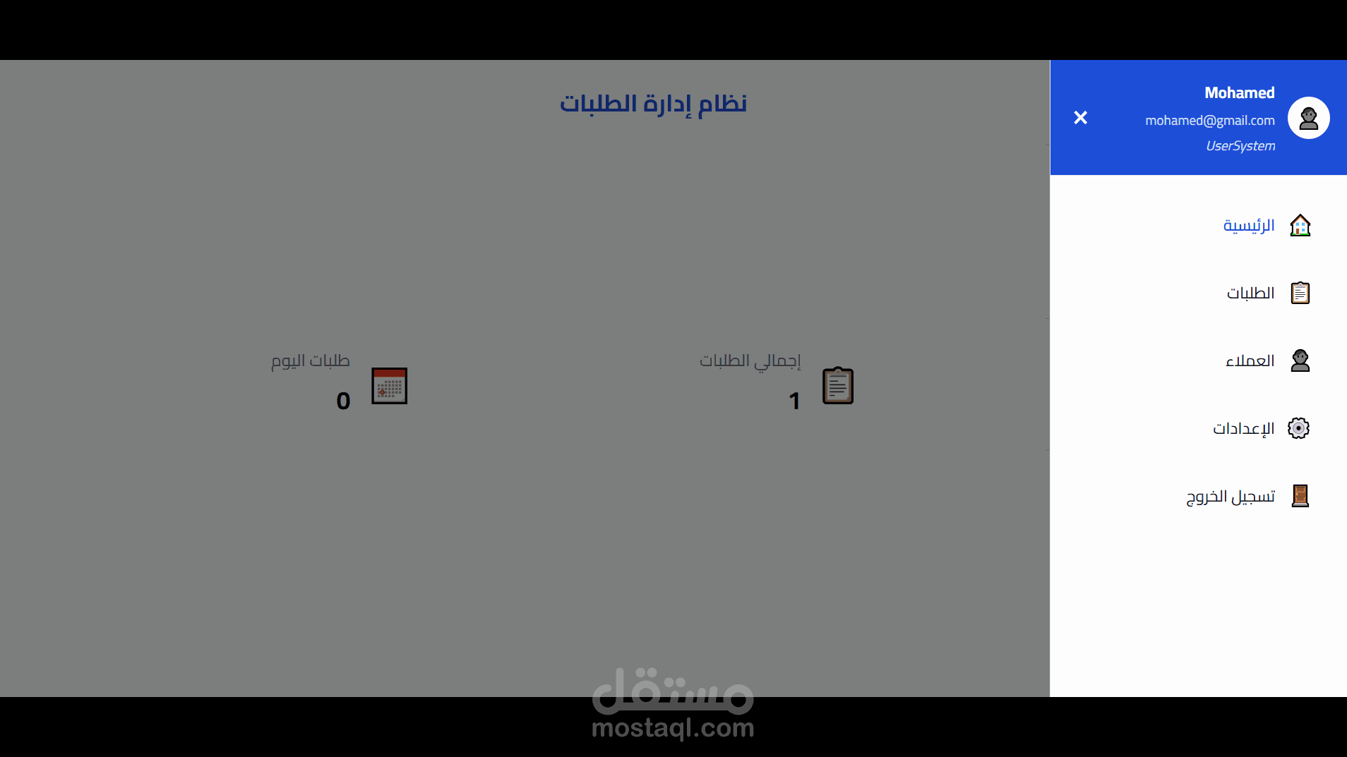 نظام متكامل لإدارة الطلبات والمستخدمين صمم خصيصًا لشركة تحتاج إلى تتبع الطلبات وإدارتها بكفاءة عالية .