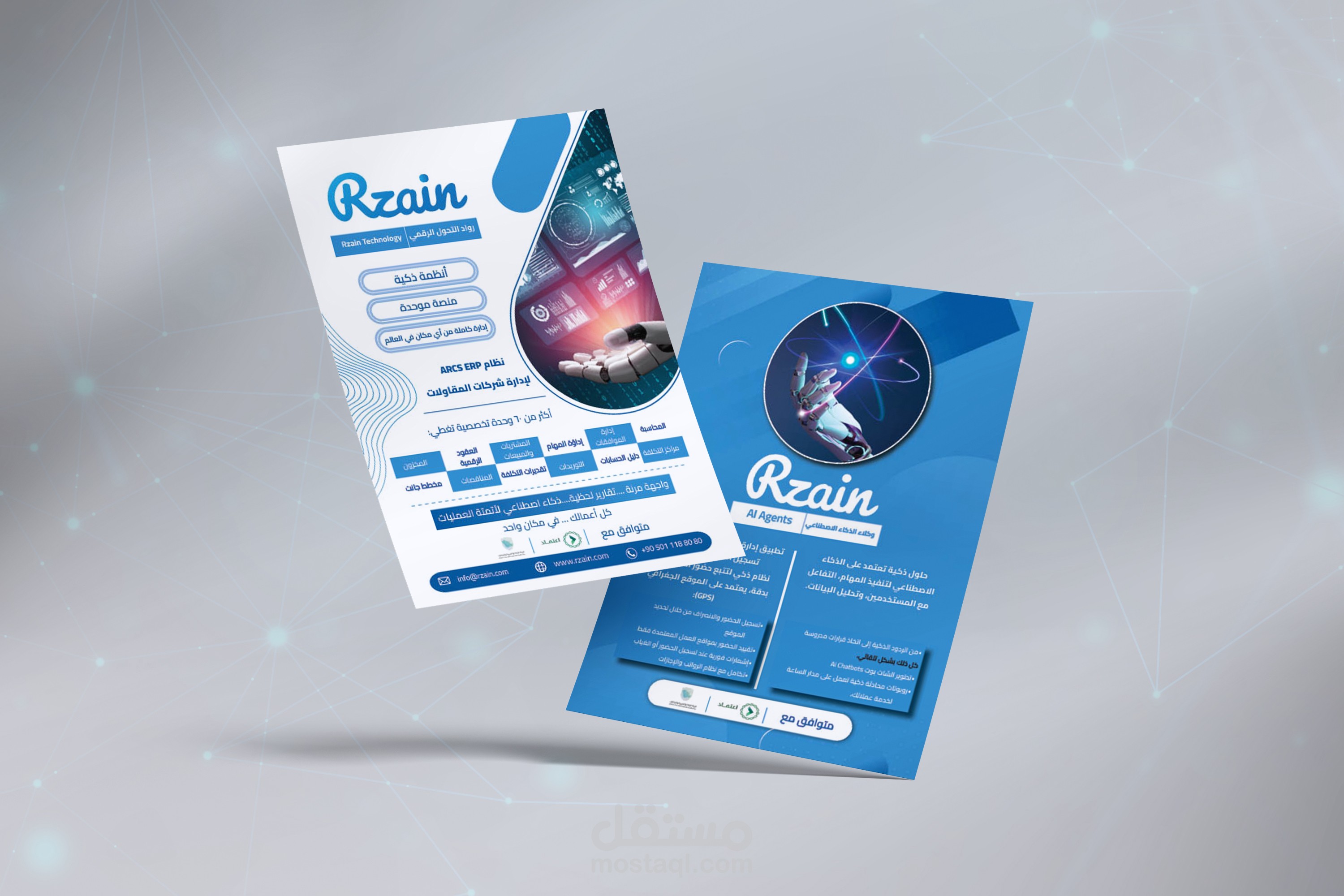 تصميم 2 بروشور اعلانى لشركة)رزين( للخدمات التقنية , تم استخدام البروشور للتعريف بالخدمة اثناء مشاركة الشركة باحد المعارض المقامة فى تركيا.