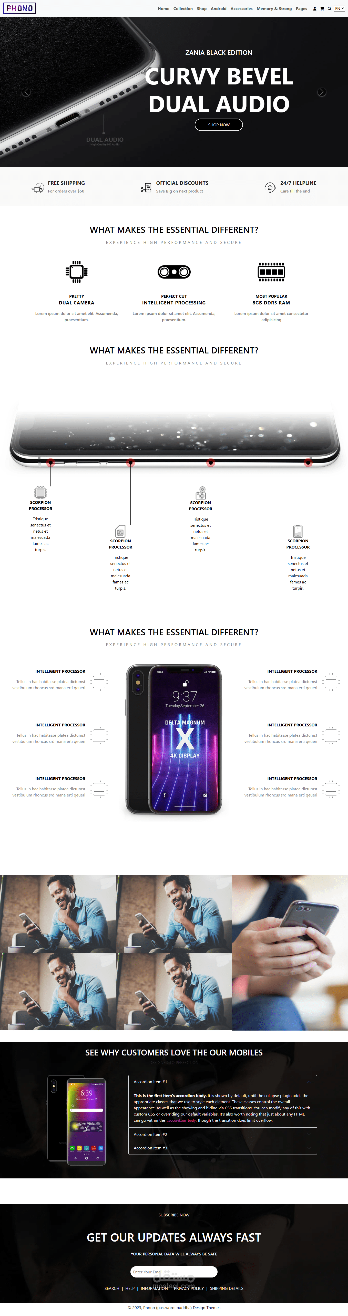 قمت بتصميم وتطوير واجهة متجر إلكتروني مخصص لعرض أنواع الهواتف ومواصفاتها باستخدام HTML وCSS وBootstrap.