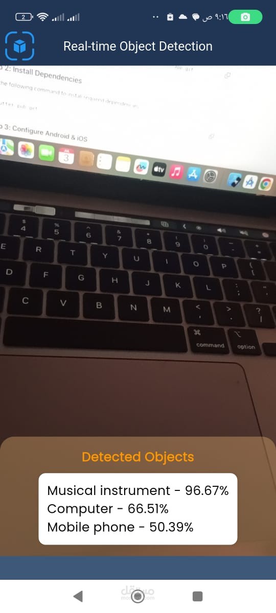 This Flutter project implements real-time object detection using the Camera plugin and Google ML Kit's Image Labeling API. It detects objects in live camera frames and displays the detected labels with confidence percentages.