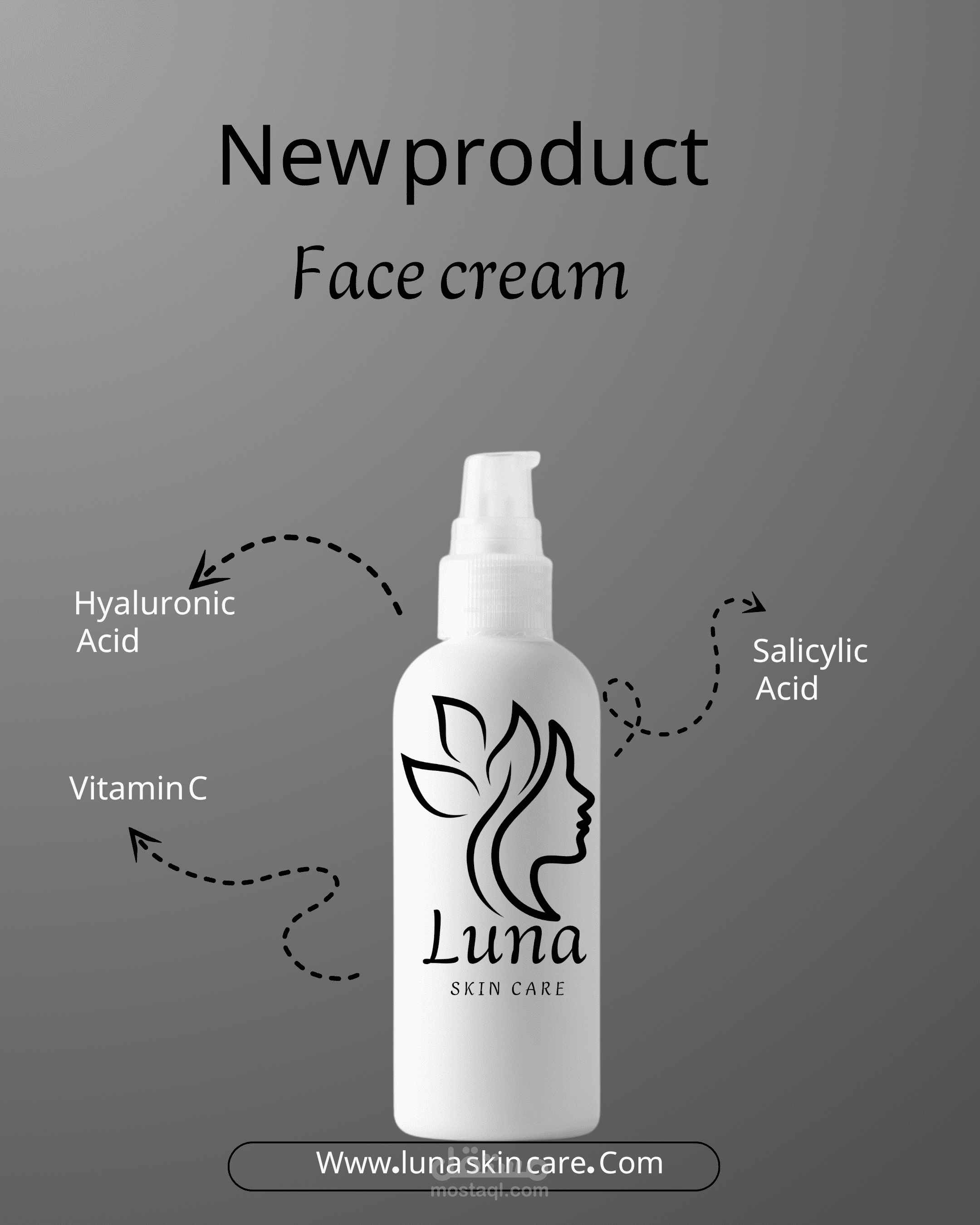 I designed a modern, elegant logo for a fictional skincare brand called "Luna Skincare". The style is minimalist and feminine, using serif typography and a crescent moon icon to reflect beauty and simplicity.