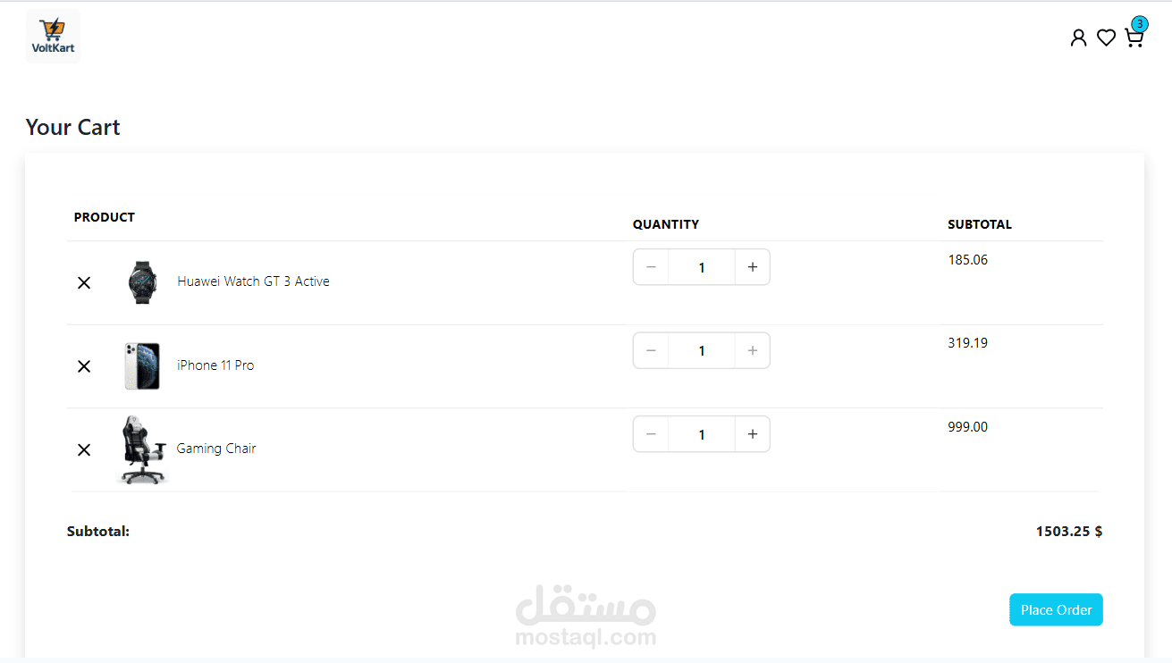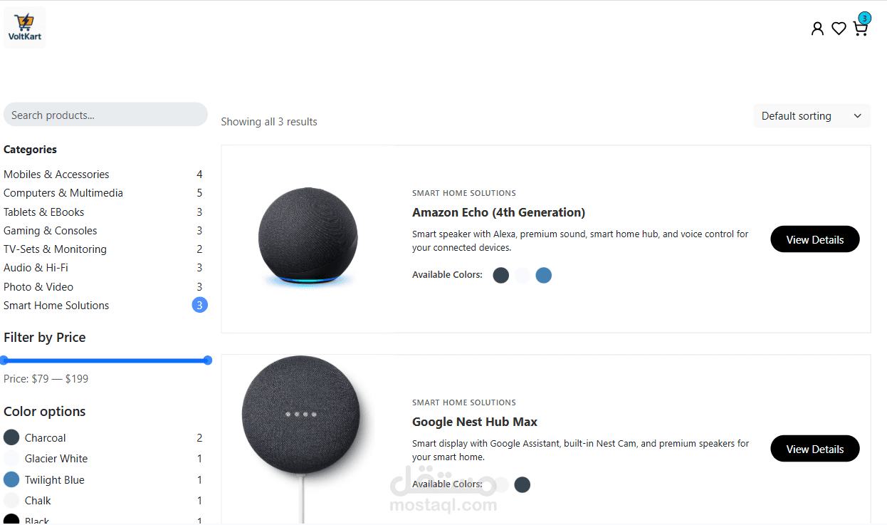 VoltKart هو متجر إلكتروني متكامل تم تطويره بالكامل من الصفر بهدف عرض مهاراتي في بناء تطبيقات ويب احترافية.