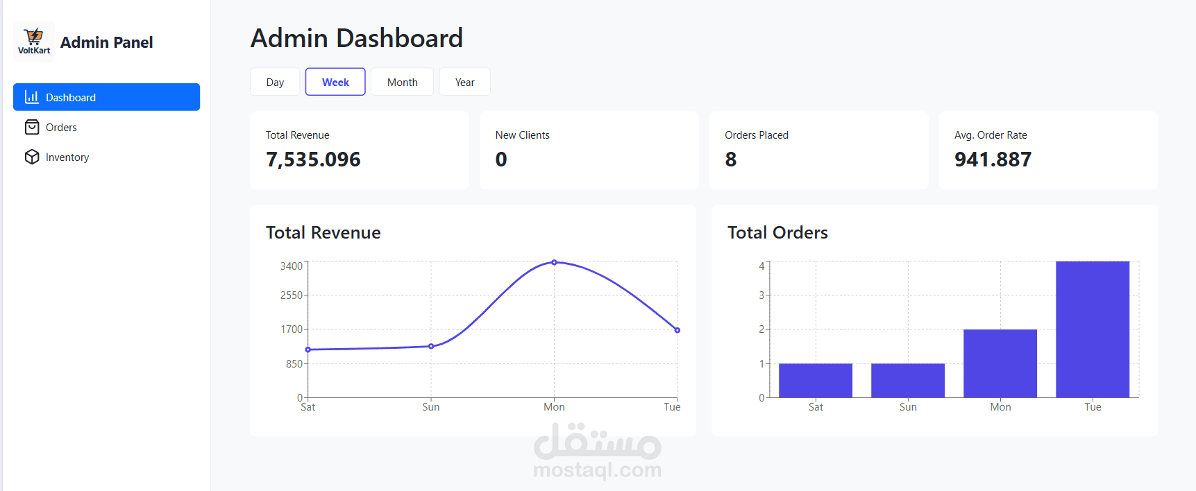 • لوحة تحكم إدارية لمتابعة الطلبات وإدارة المنتجات