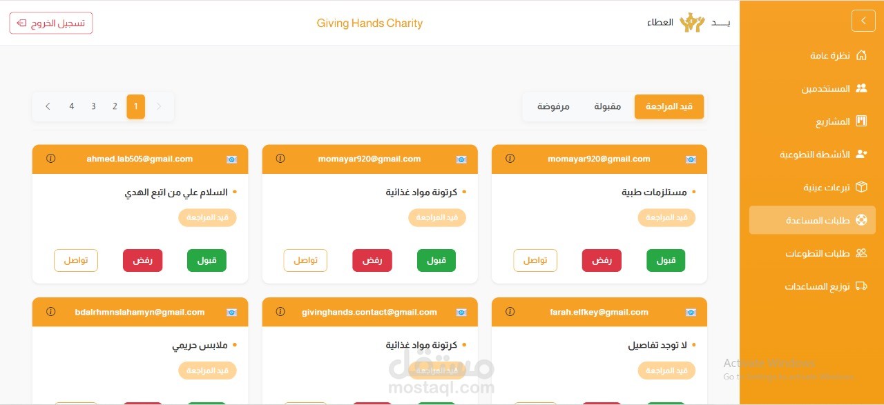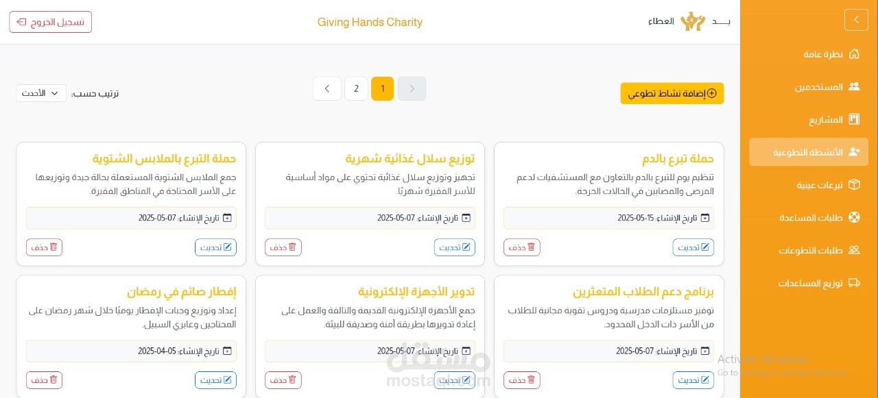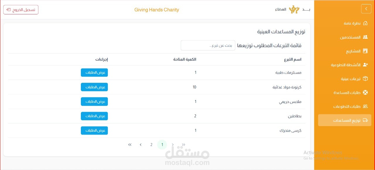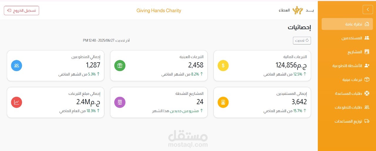 Giving Hand هو نظام متكامل لإدارة جمعية خيرية، تم تطويره كجزء من مشروع تخرجي، ويهدف إلى تسهيل عمليات التواصل وتنظيم البيانات بين: