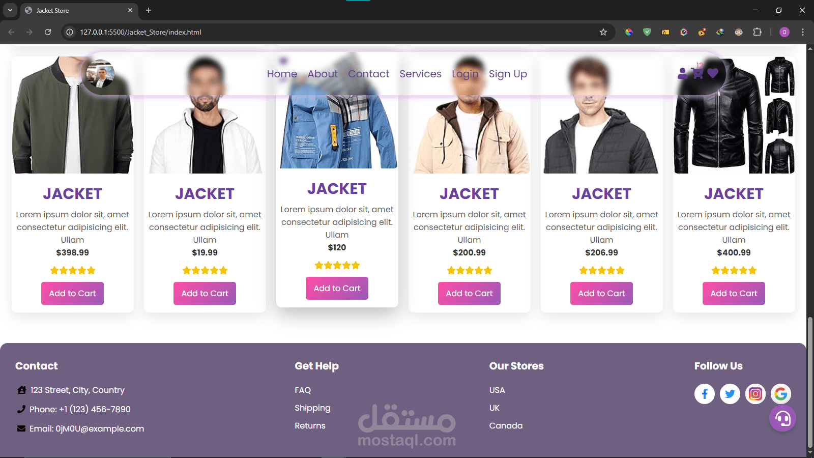 في هذا المشروع قمت بتصميم وبرمجة متجر إلكتروني متجاوب لعرض وبيع السترات، باستخدام HTML، CSS، وJavaScript.