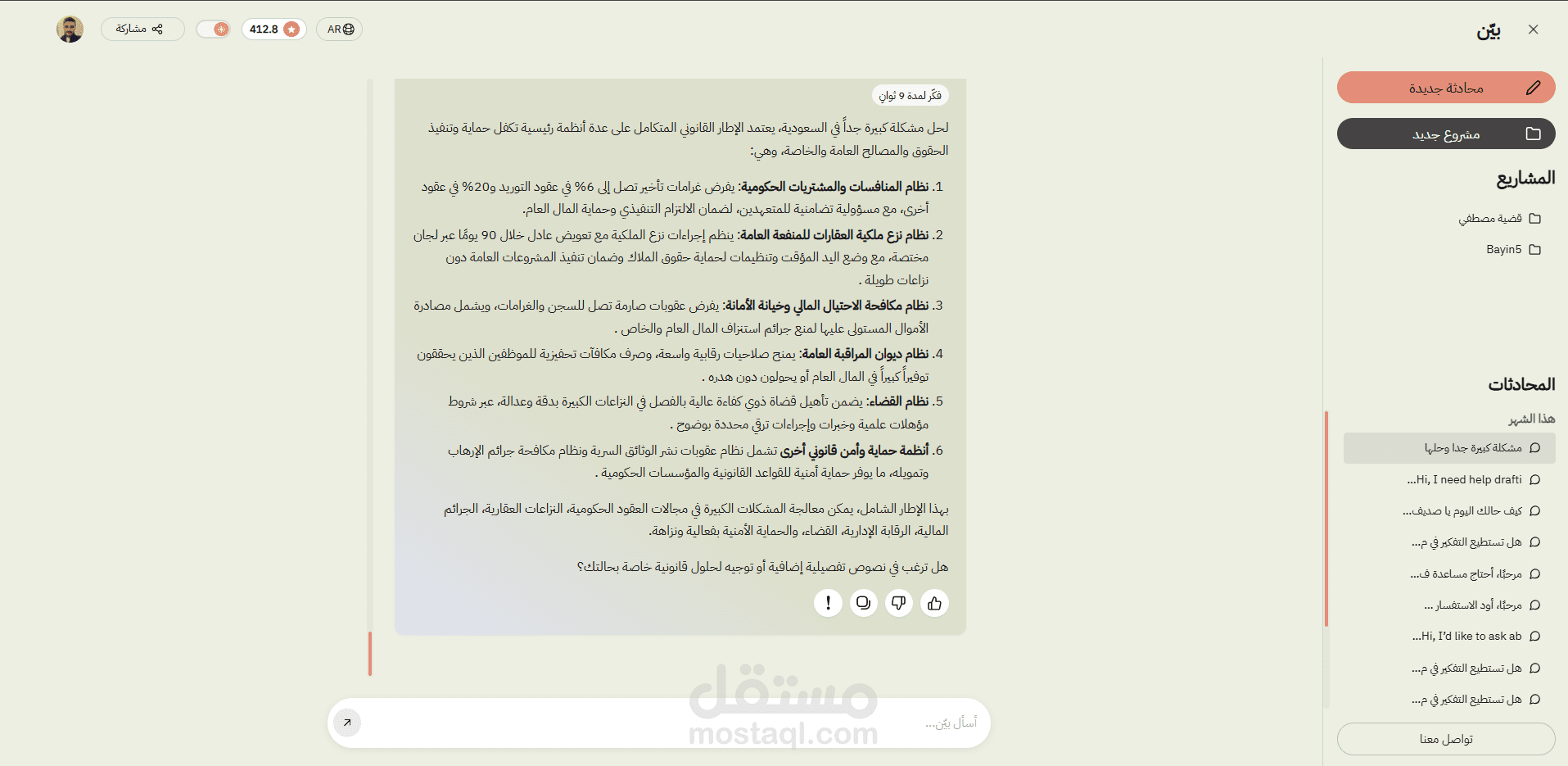 بيّن هو مساعد قانوني ذكي طورته إلهام المستقبل ضمن رؤية المملكة 2030 للتحول الرقمي. يهدف إلى: