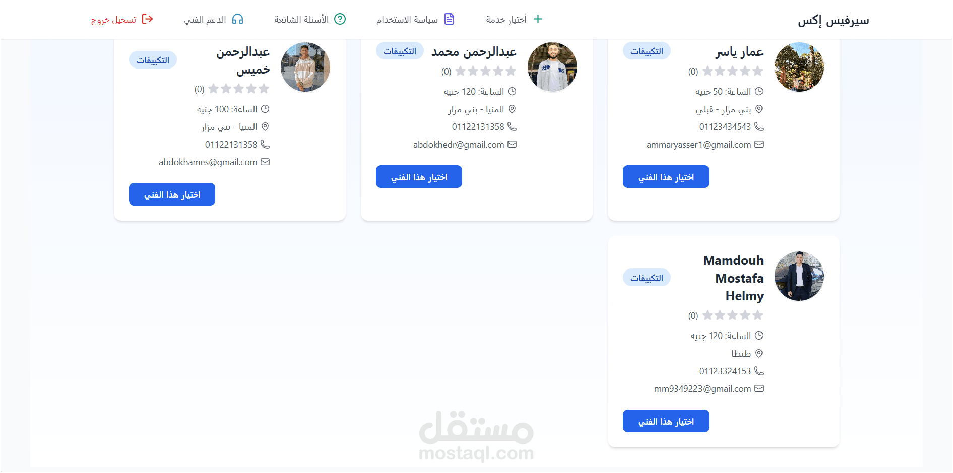 المنصة تربطك بأفضل الفنيين بحسب موقعك، مع عرض ملفاتهم المهنية وخبراتهم