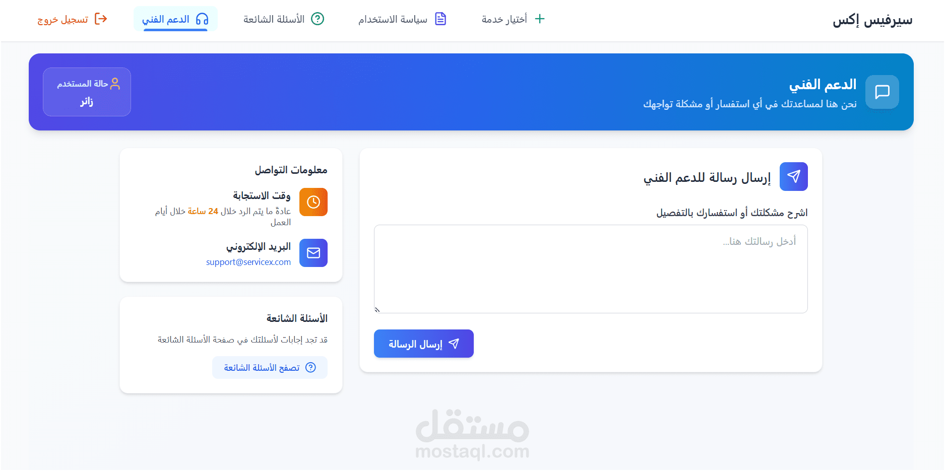 المنصة توفّر دعم مباشر عبر واجهة التواصل سواء لمساعدة في الاستخدام أو متابعة الطلبات .