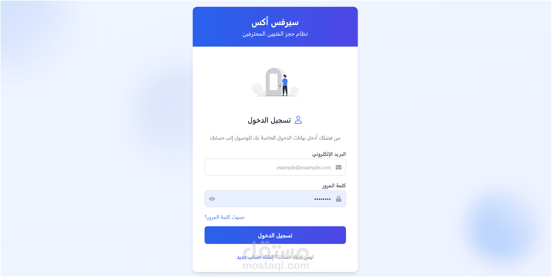 ممكن لكل من العملاء والفنيين إنشاء حساب أو تسجيل الدخول لمتابعة الطلبات وتحديث حالة العمل .