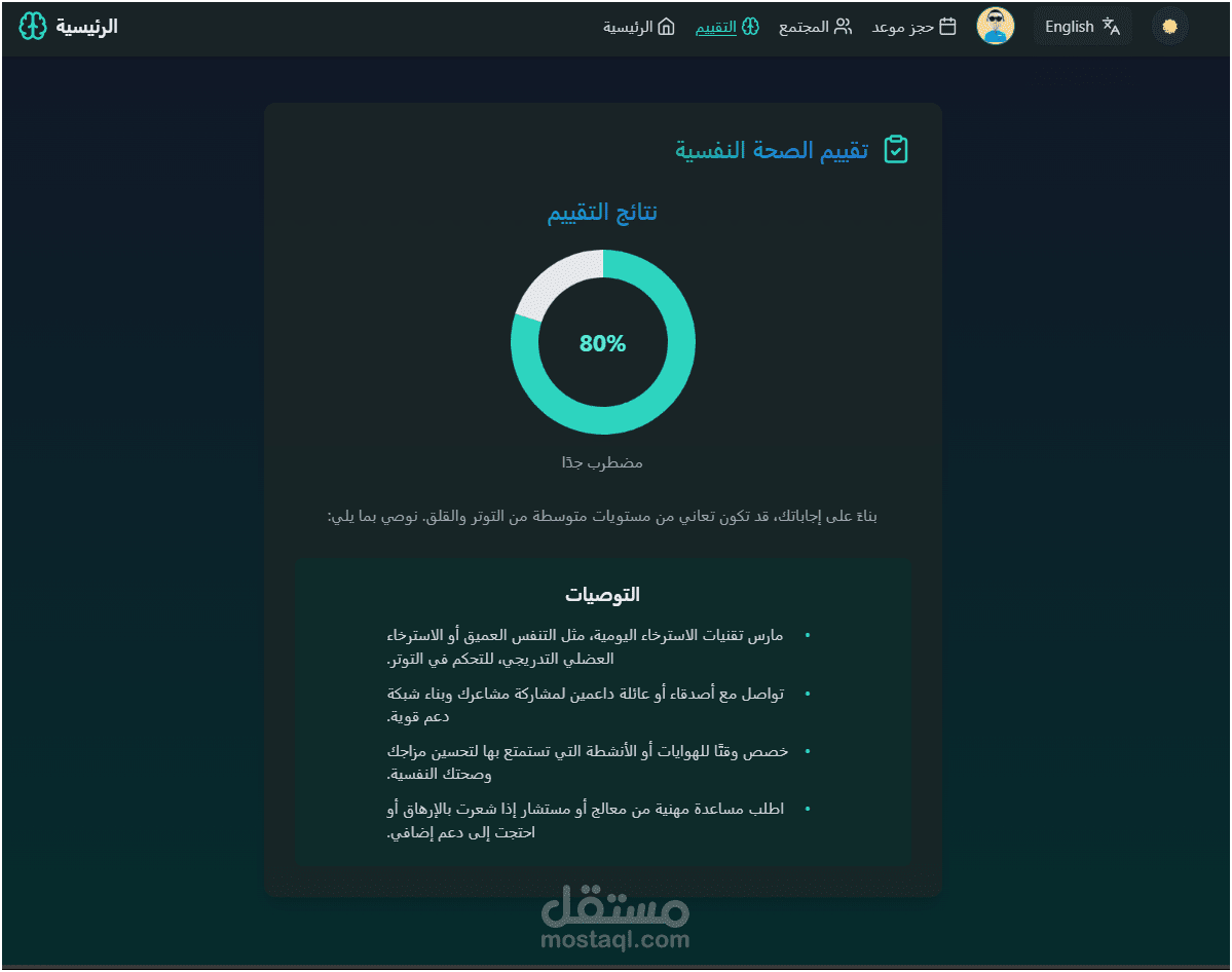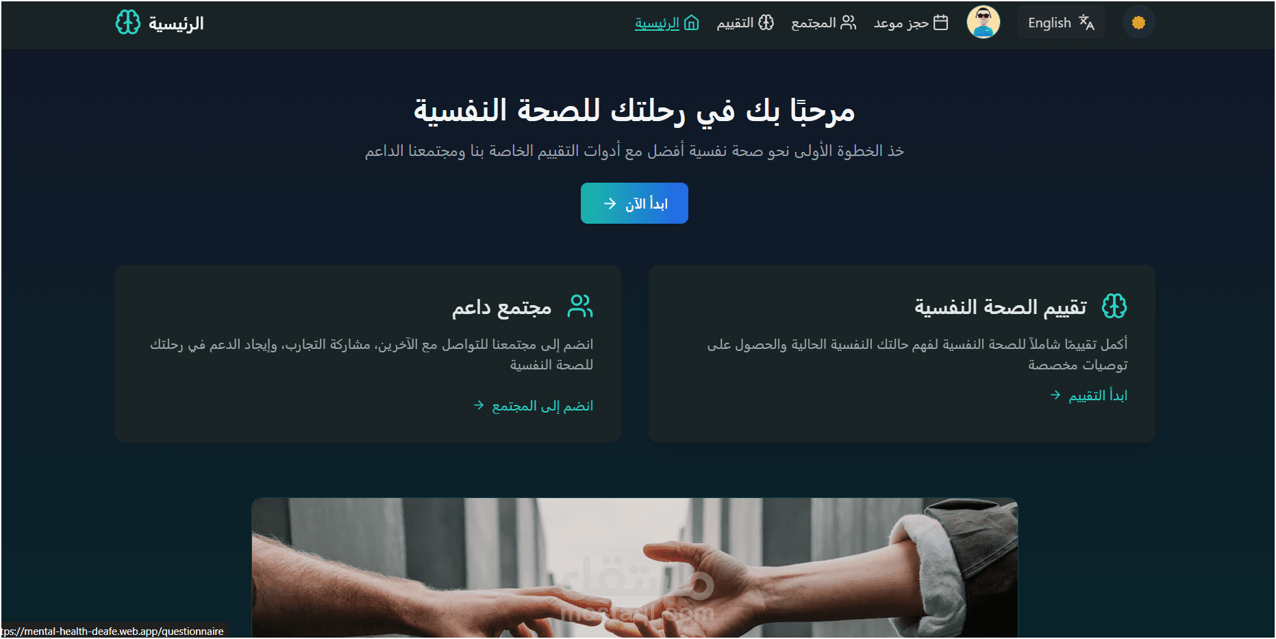 إبراز الخدمات الأساسية مثل التقييم المبدئي، المجتمع التفاعلي، وحجز الاستشارات الطبية.