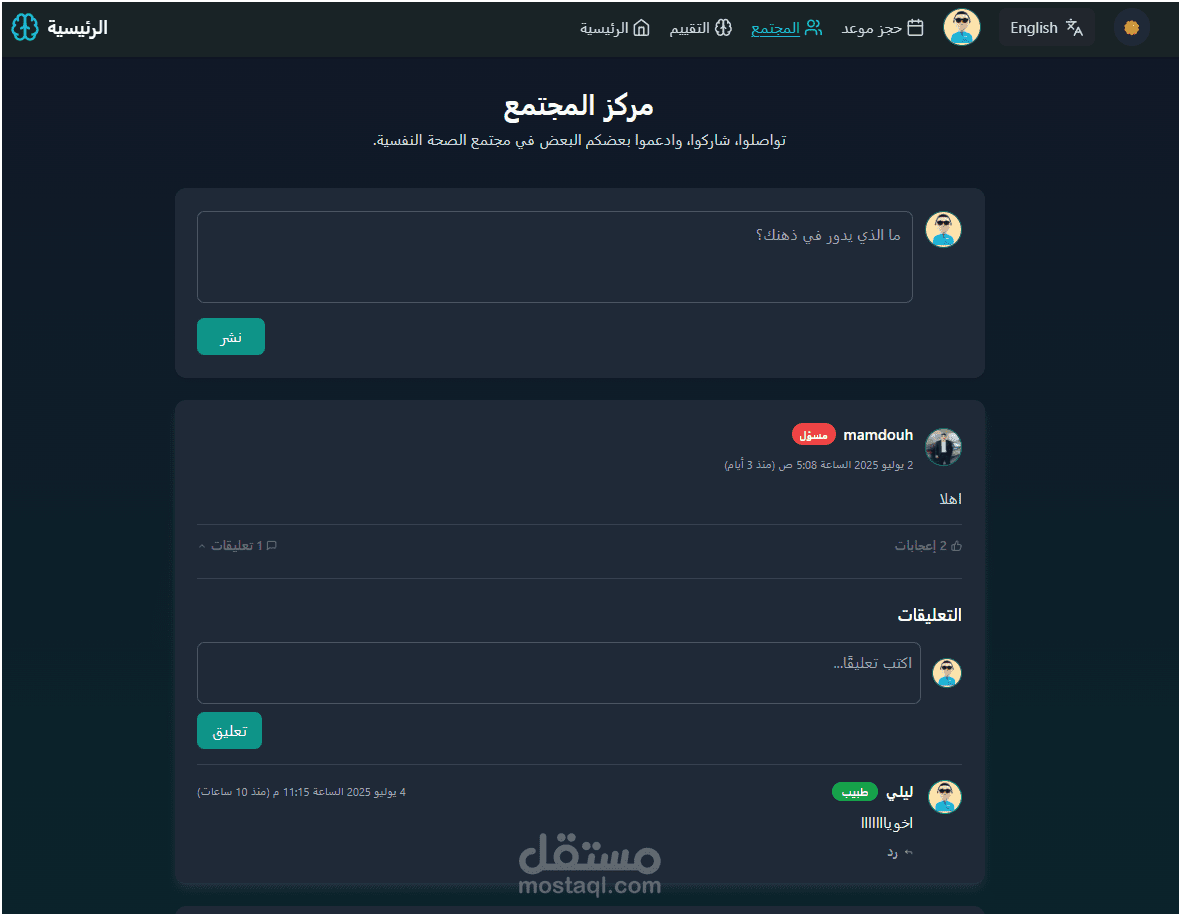 إنشاء مجتمع تفاعلي للدعم النفسي.