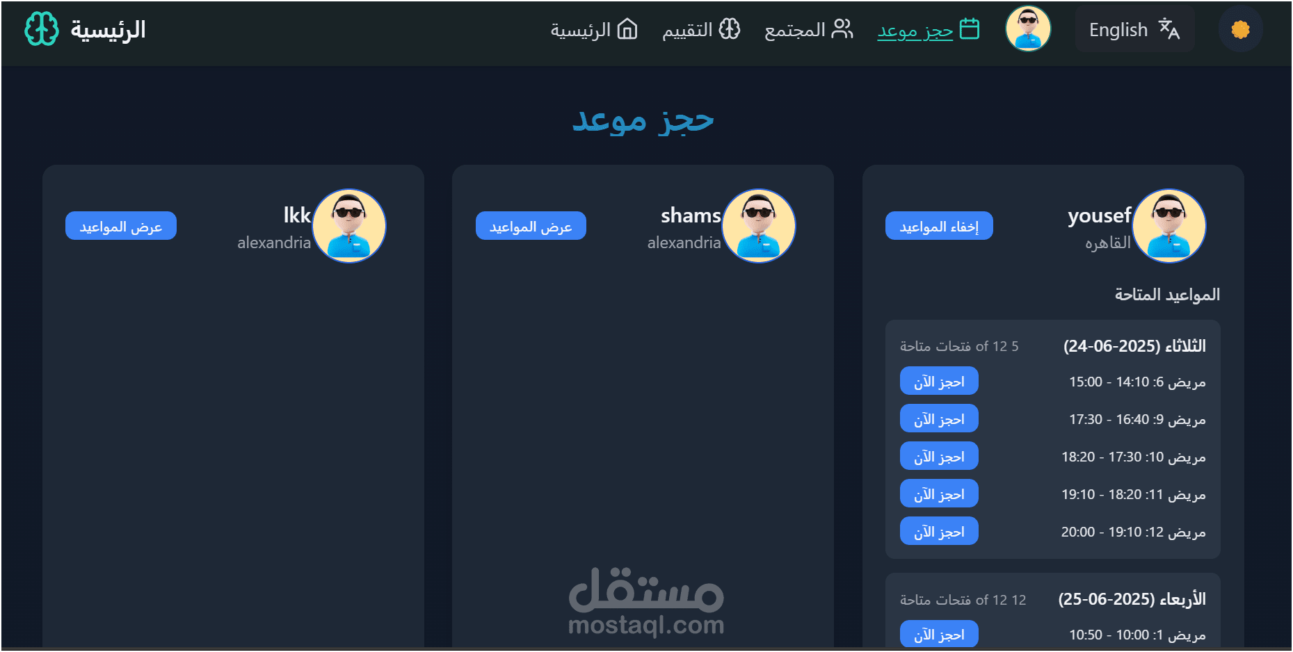 إدارة المواعيد بسهولة (عرض، تعديل، أو إلغاء المواعيد).