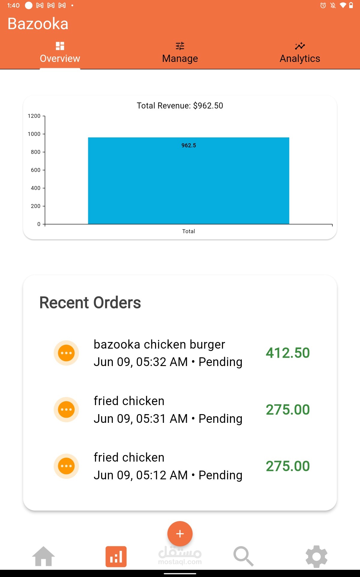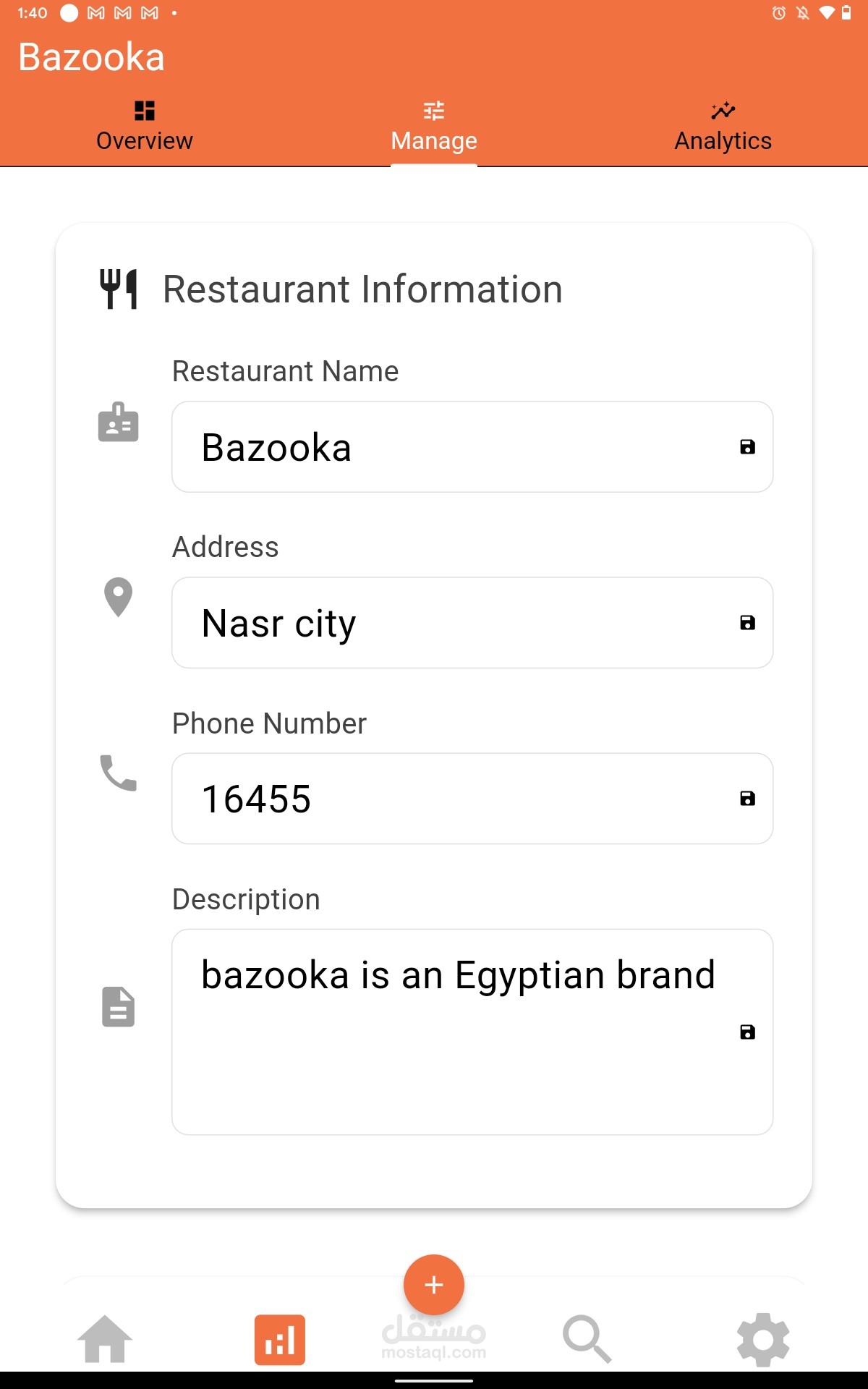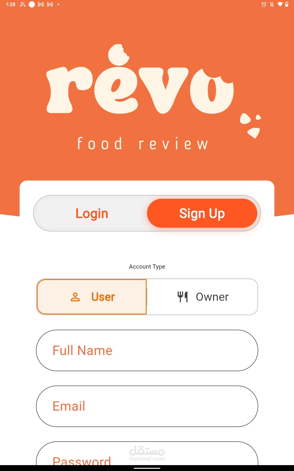 نظام حسابات متعددة: صاحب مطعم، ومستخدم عادي