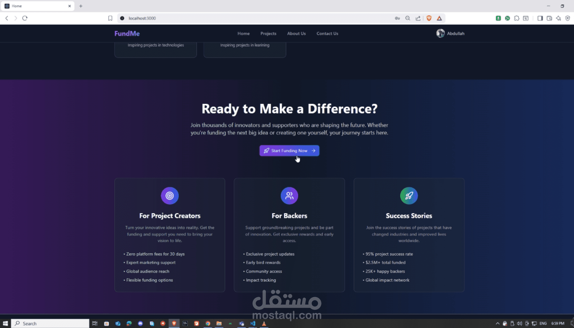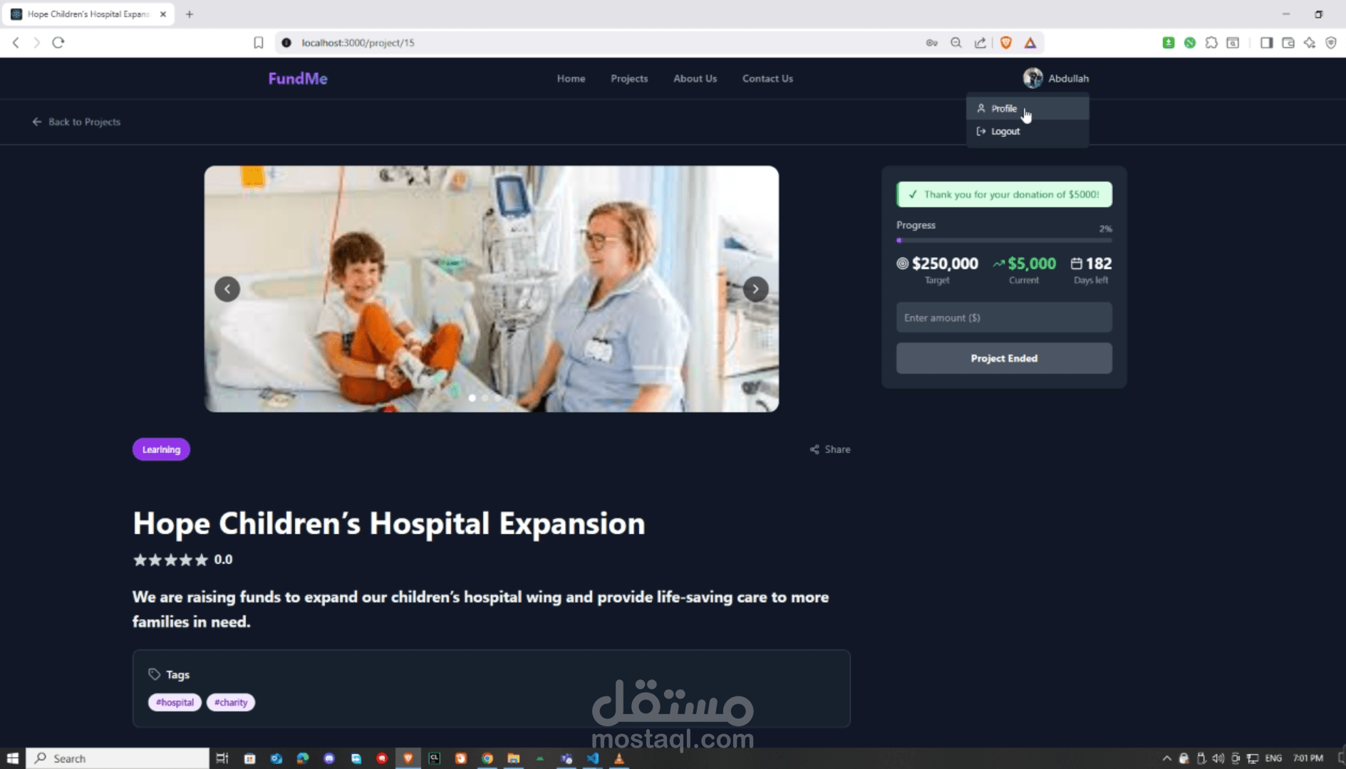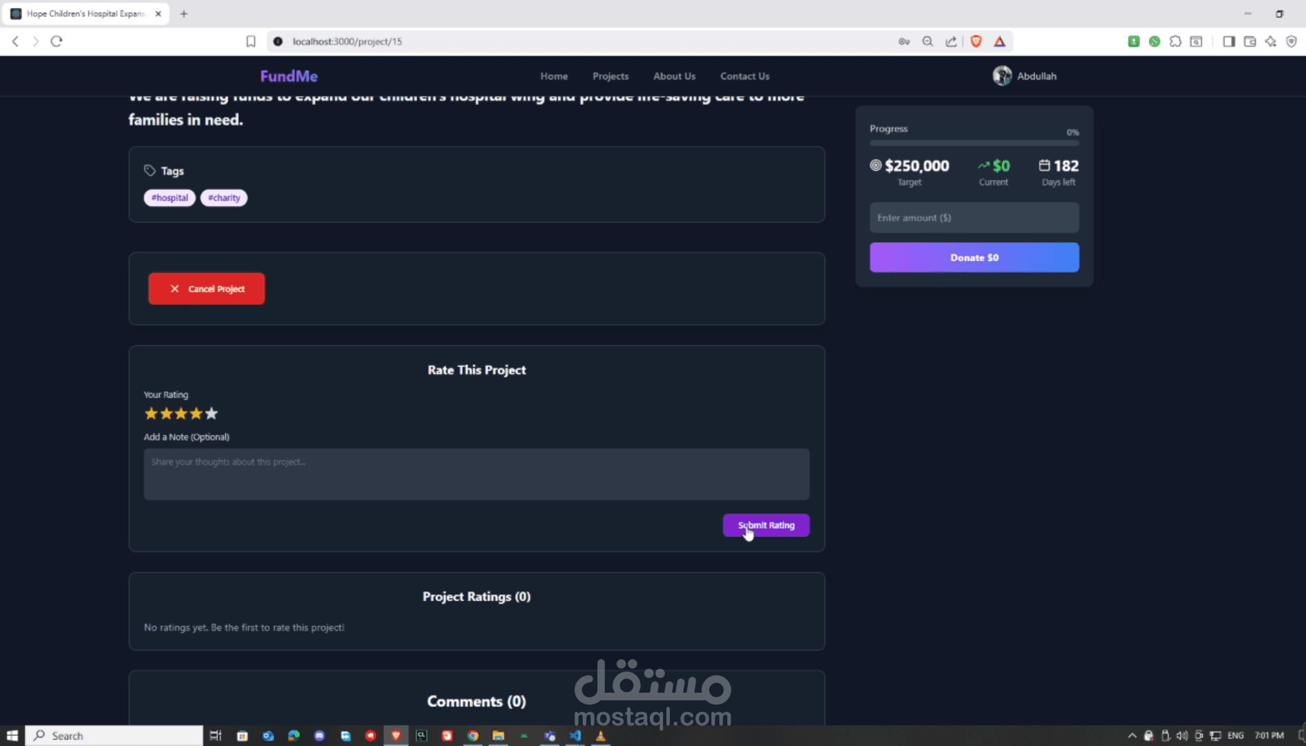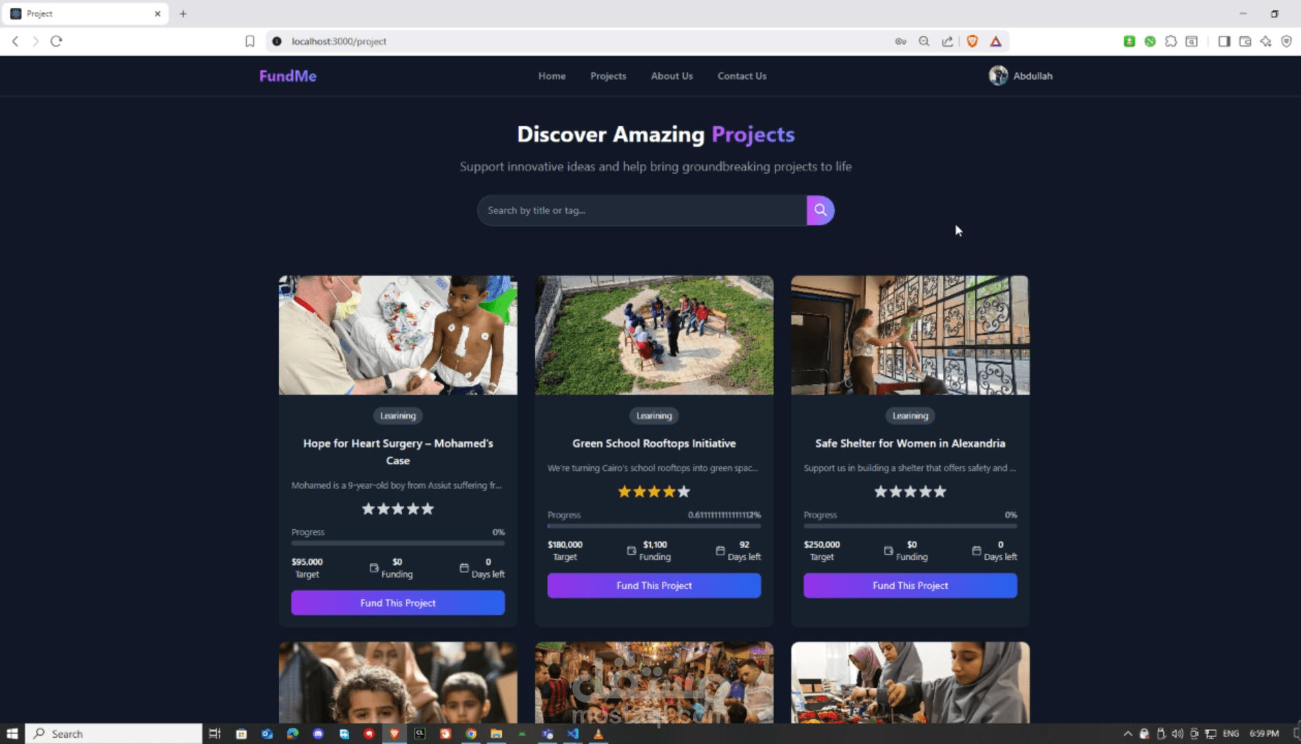 منصة إلكترونية متكاملة لجمع التبرعات والمساهمات للمشاريع في مصر، تهدف إلى تمكين الأفراد من بدء حملات لجمع التبرعات بسهولة مع التحكم الكامل بالمشاريع والمستخدمين.