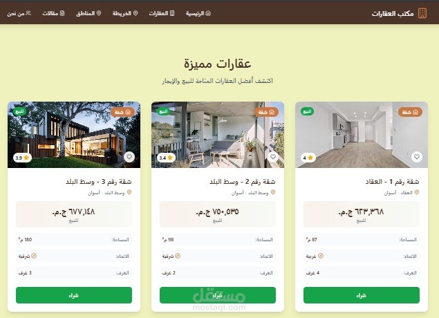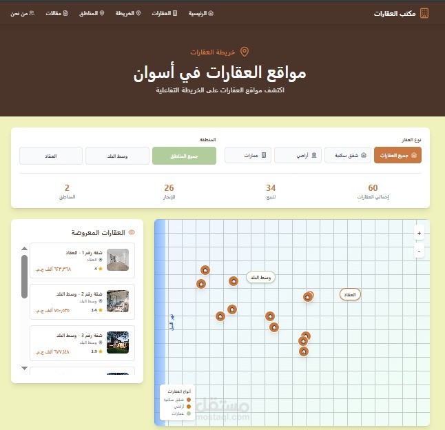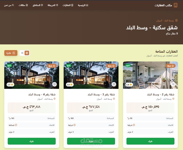 تصفية العقارات حسب الغرض (بيع/إيجار)، الموقع، السعر، والمزيد.