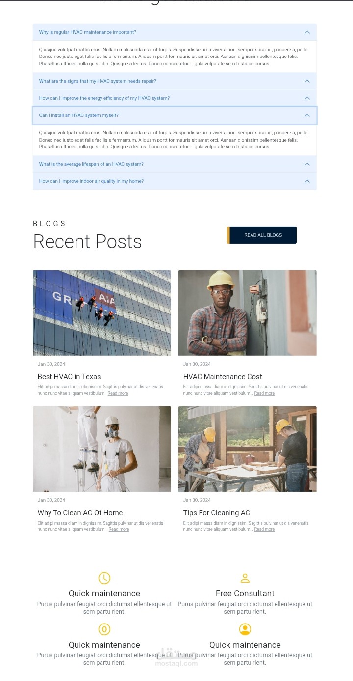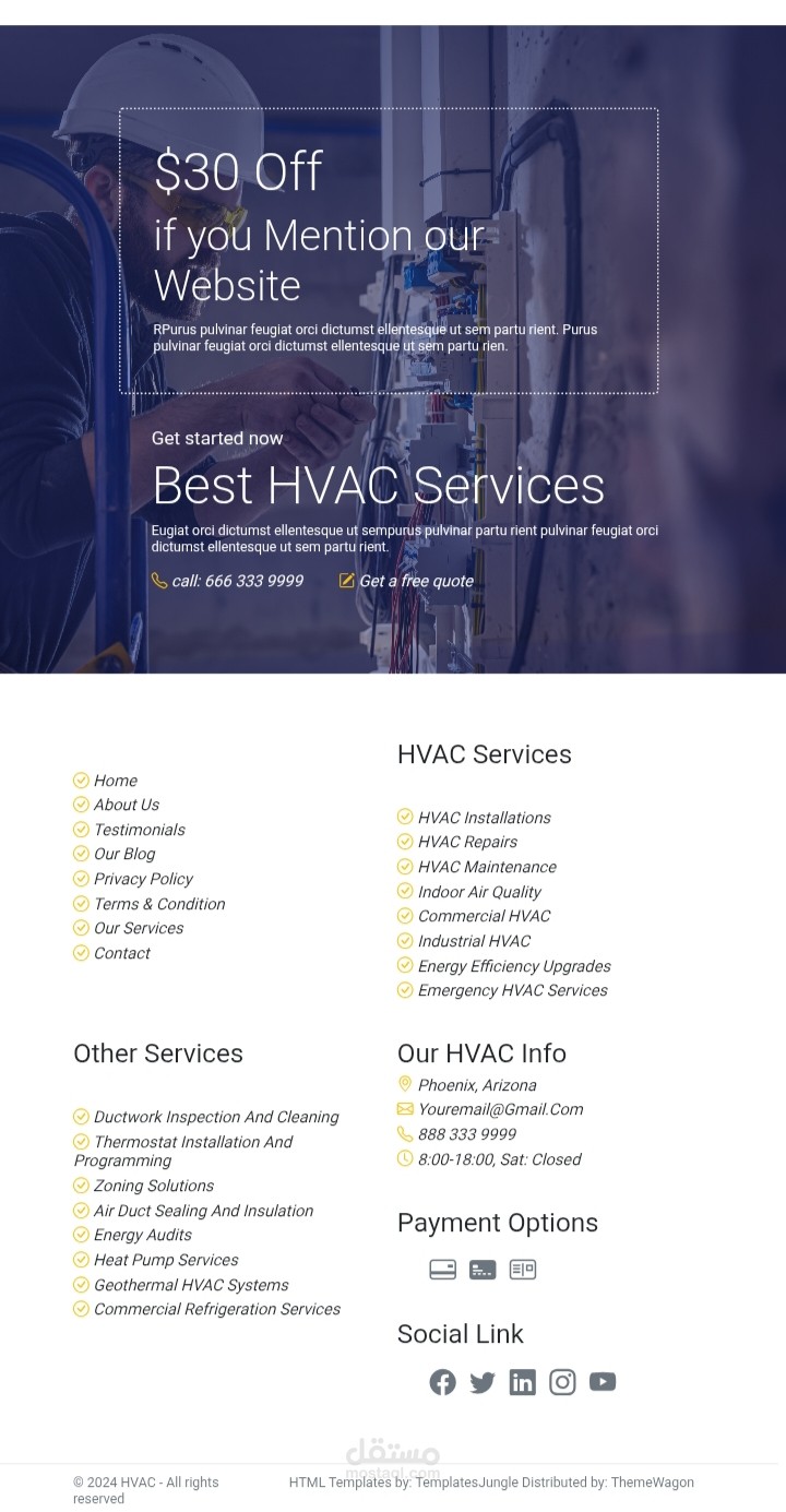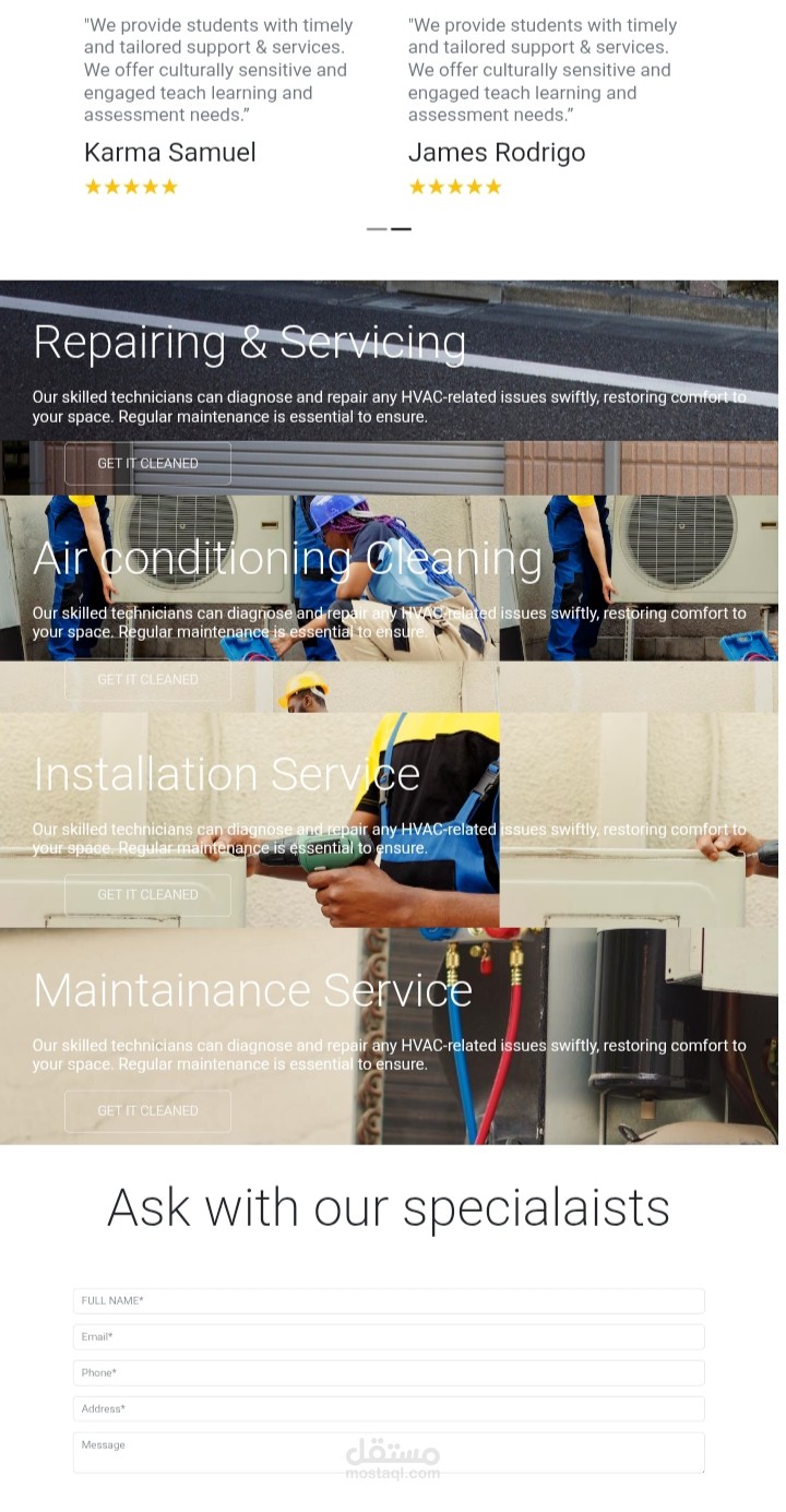 صممت وطورت موقع خدمي احترافي متخصص بخدمات HVAC وتنظيف مجاري الهواء وصيانة المنازل، باستخدام هيكل برمجي منظم وتصميم متجاوب مع جميع الأجهزة. ركزت على تجربة مستخدم سهلة، صفحات واضحة، نماذج تواصل، وأقسام تعرض الخدمات والعروض وآراء العملاء بشكل أنيق وعملي.